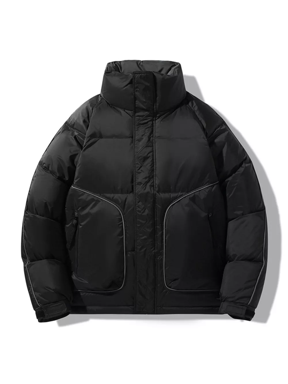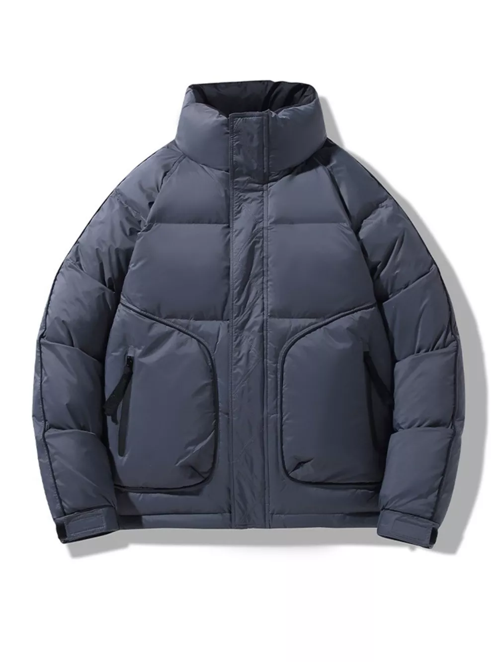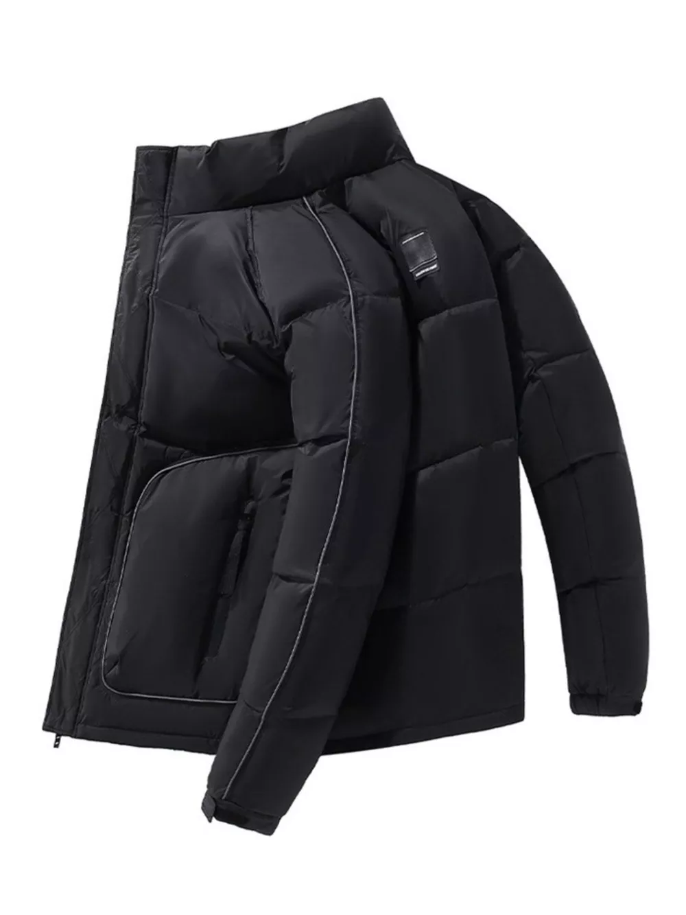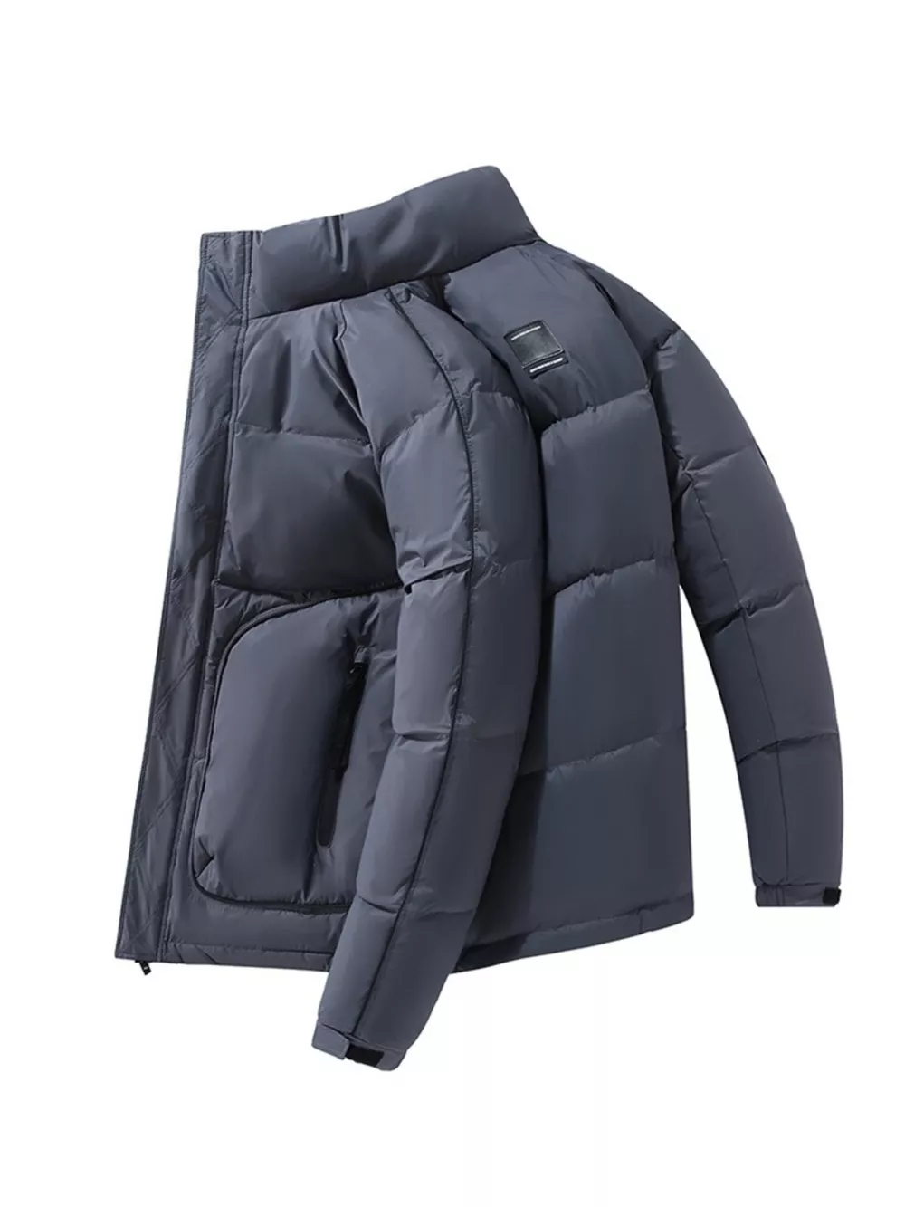 Men's Plus Size Stand Collar Puffer Jacket with Side Zipper Pockets