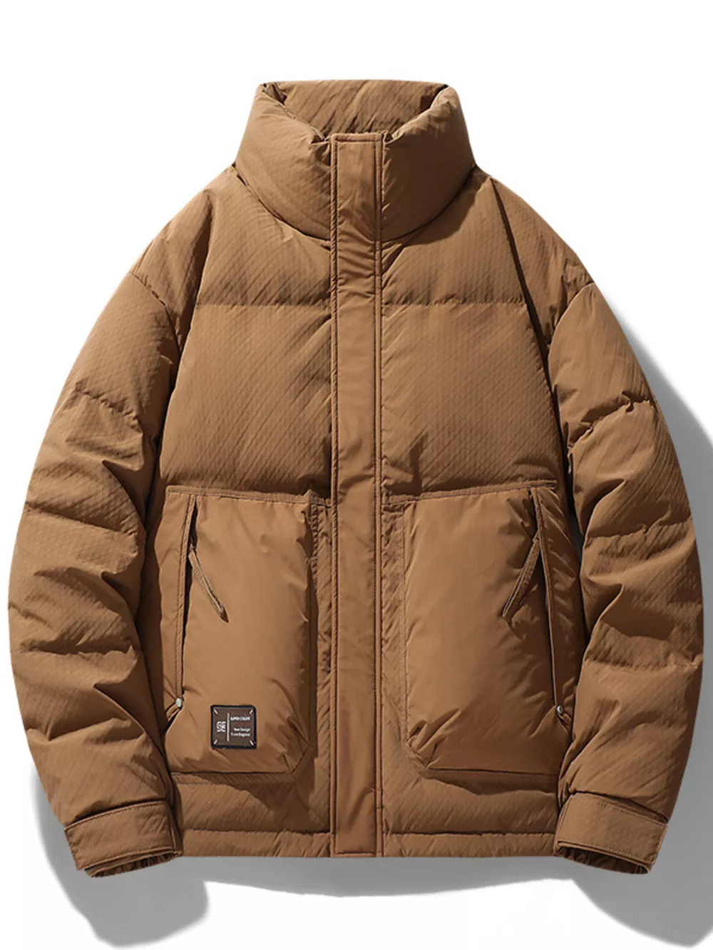 Men's Plus Size Stand Collar Puffer Jacket with Side Zipper Pockets