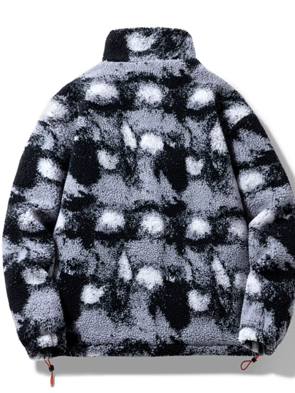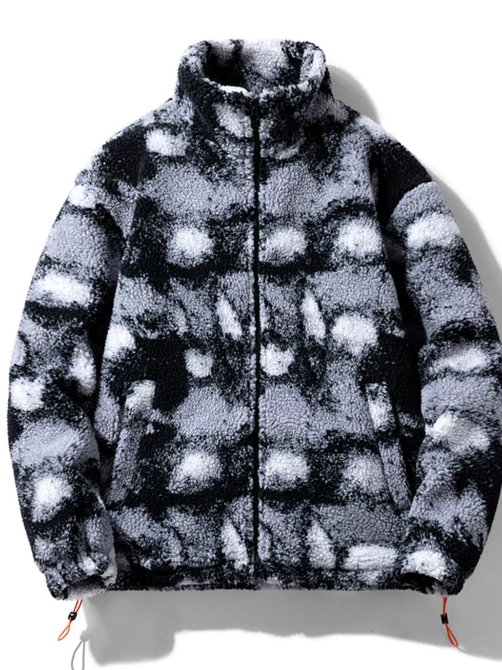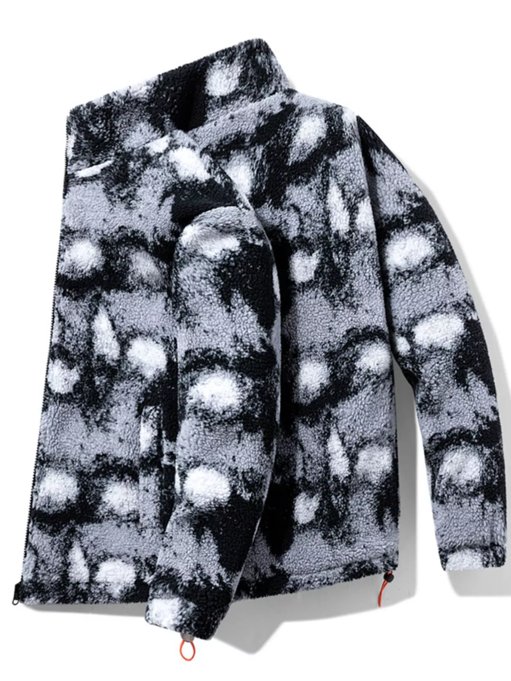 Men's Plus Size Zip Up Abstract Pattern Fleece Jacket