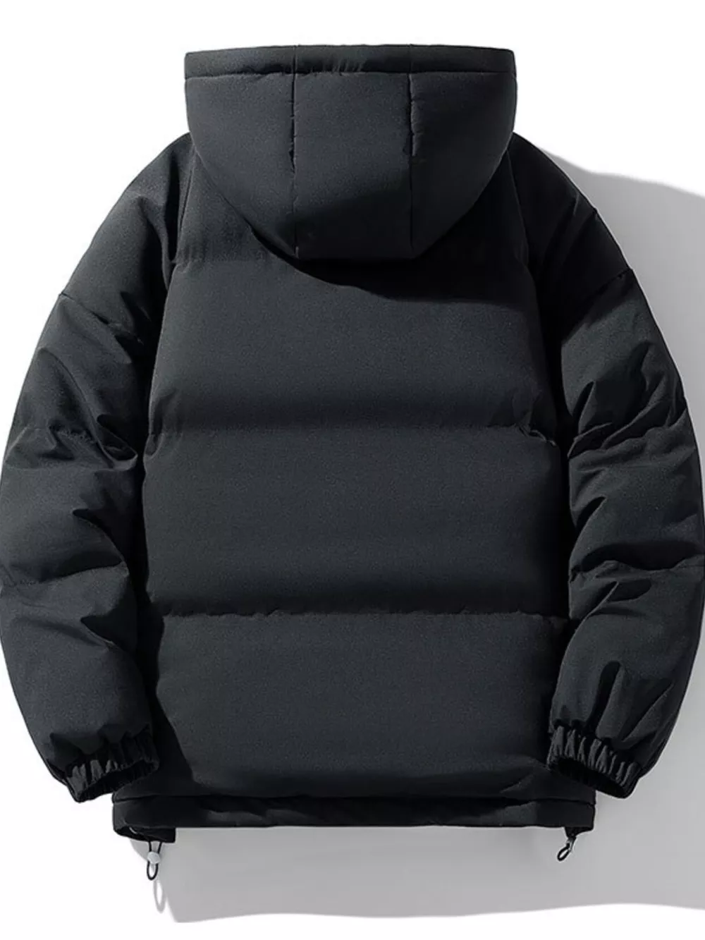 Men's Plus Size Hooded Puffer Jacket with Drawstring Hem