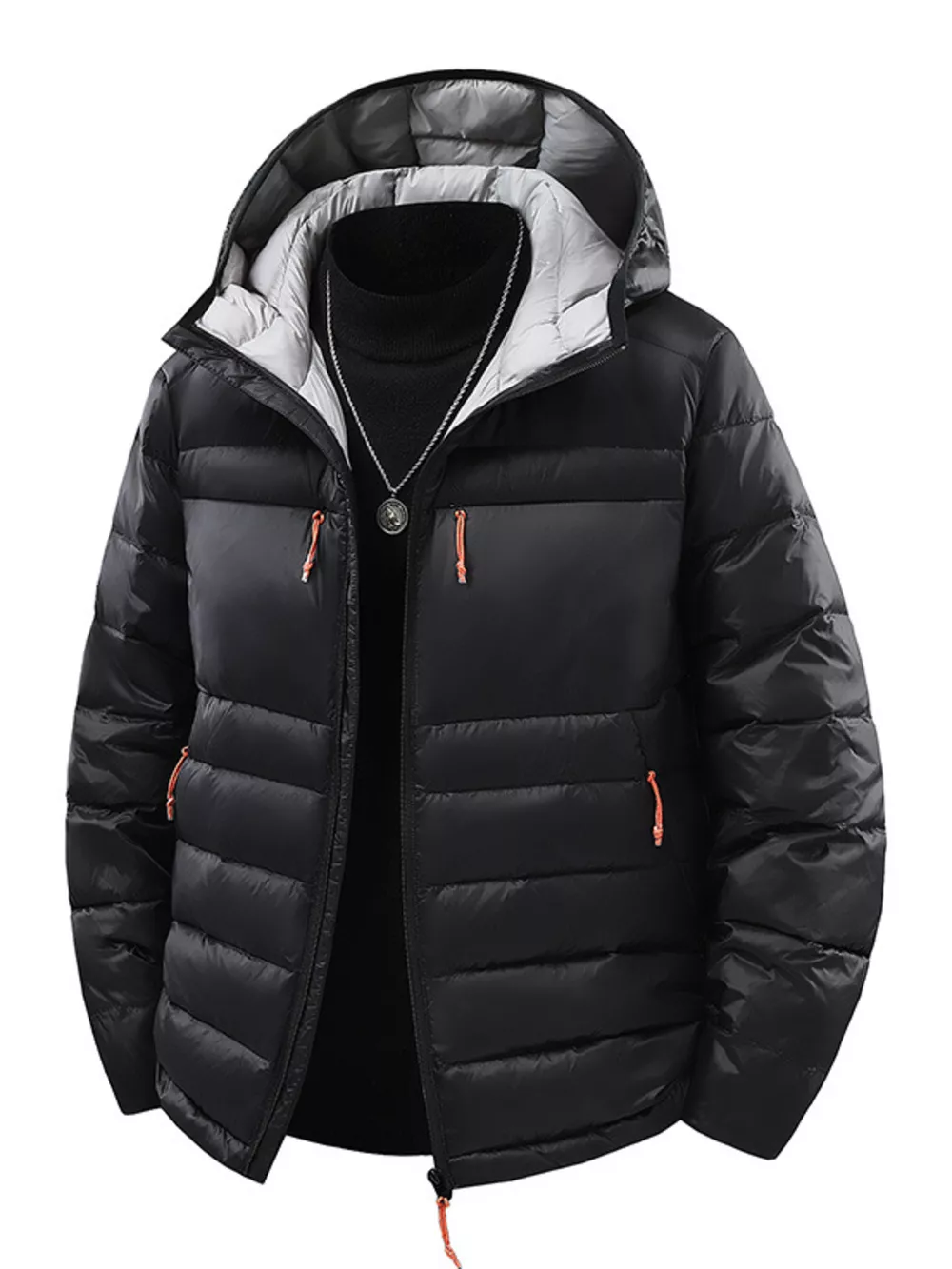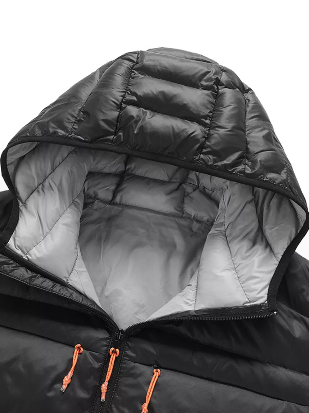 Men's Plus Size Zip Up Hooded Contrast Puffer Jacket