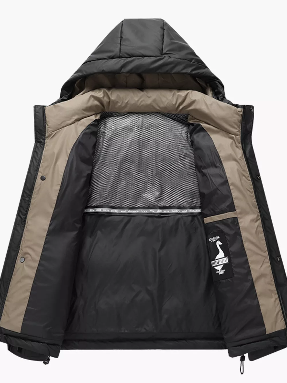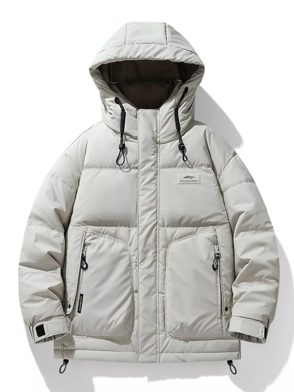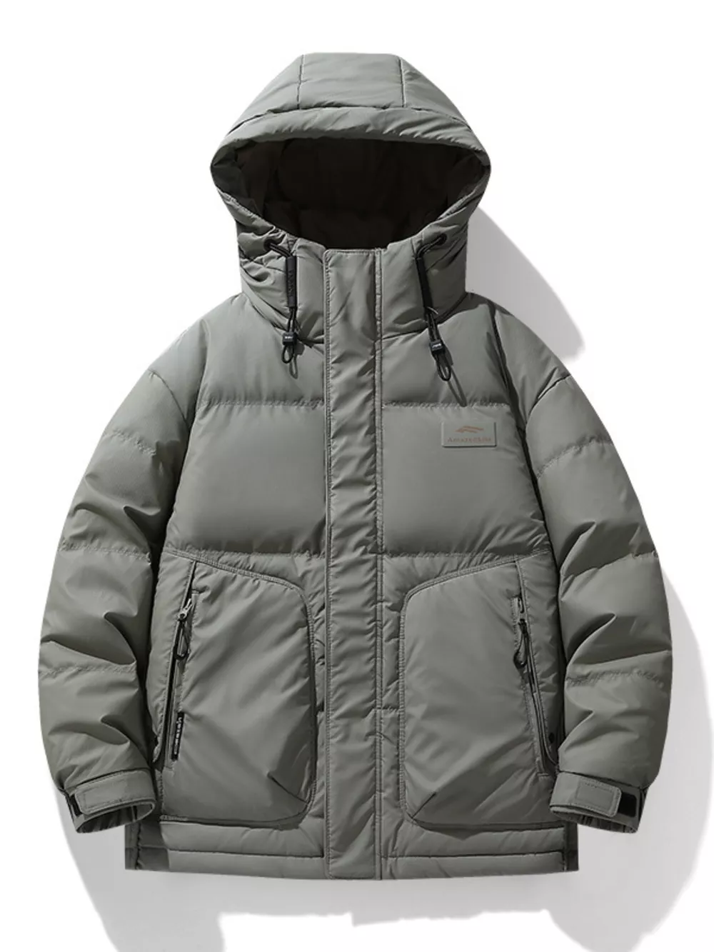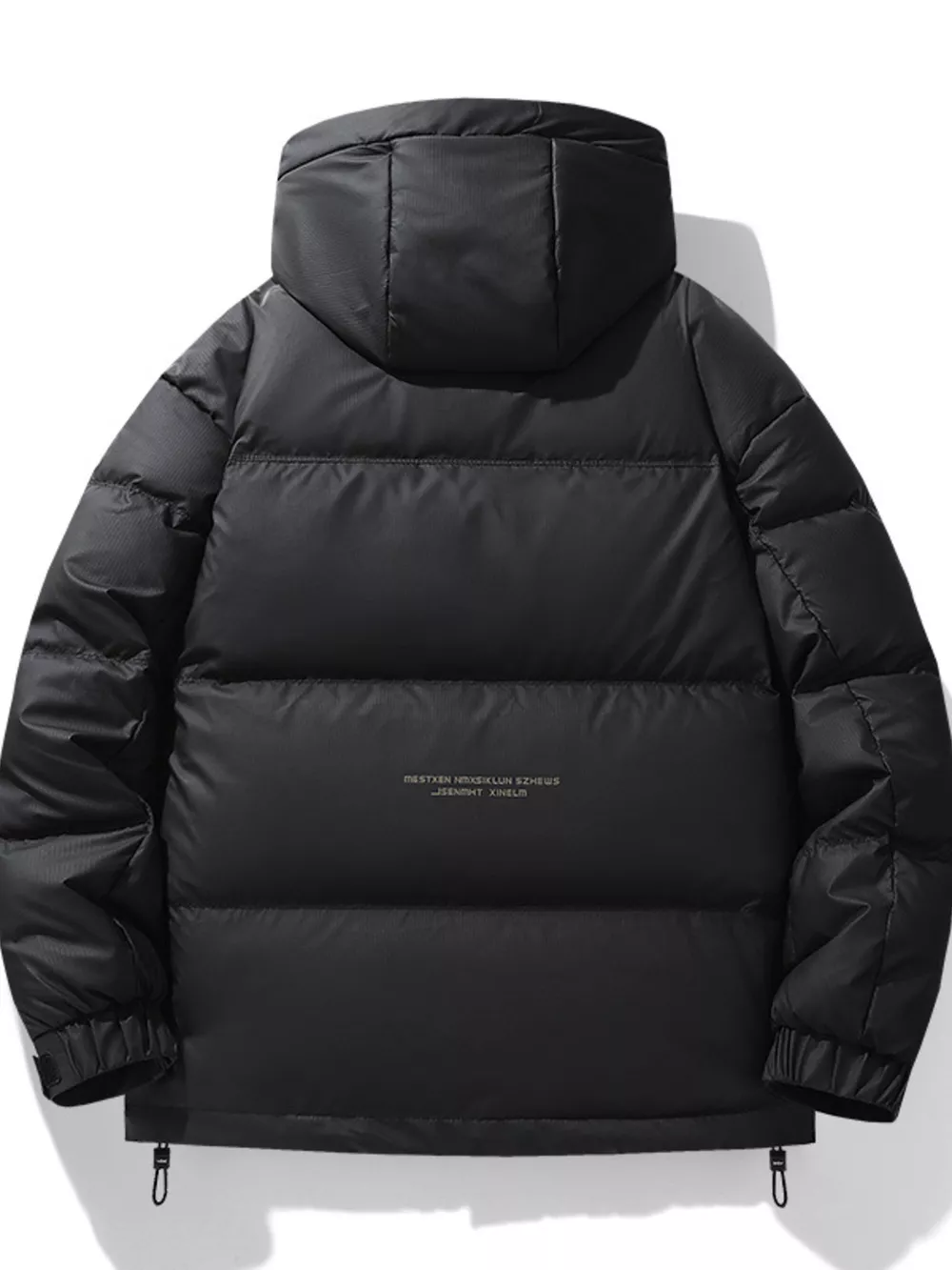 Men's Plus Size Hooded Puffer Jacket with Drawstring Hem