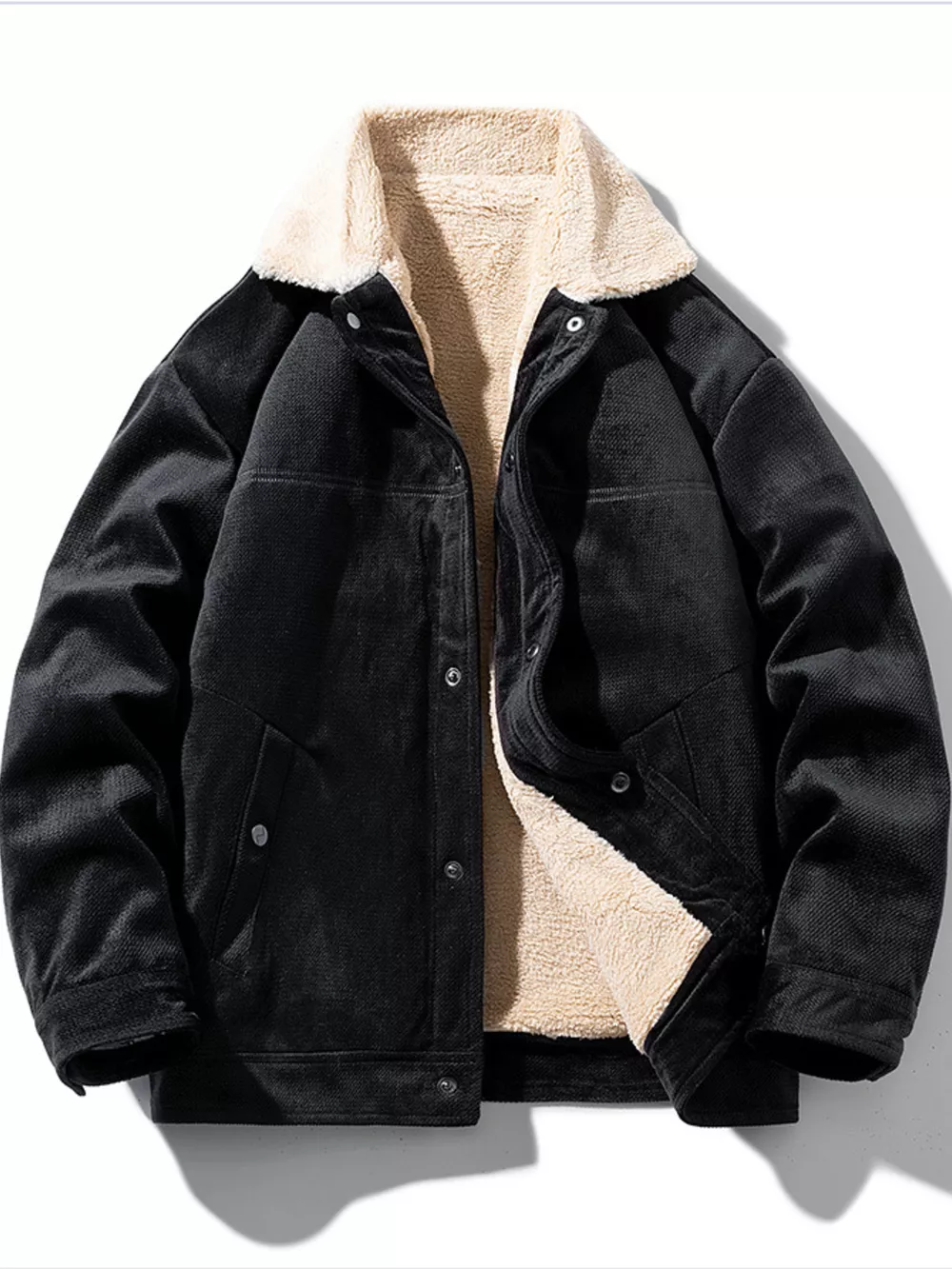 Men's Plus Size Snap Down Sherpa Lined Winter Coat