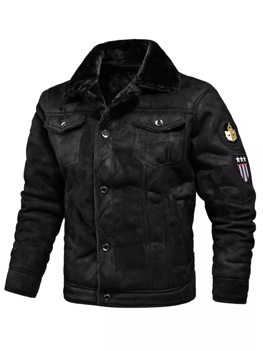 Men's Plus Size Shearling Lined Zip Up Jacket