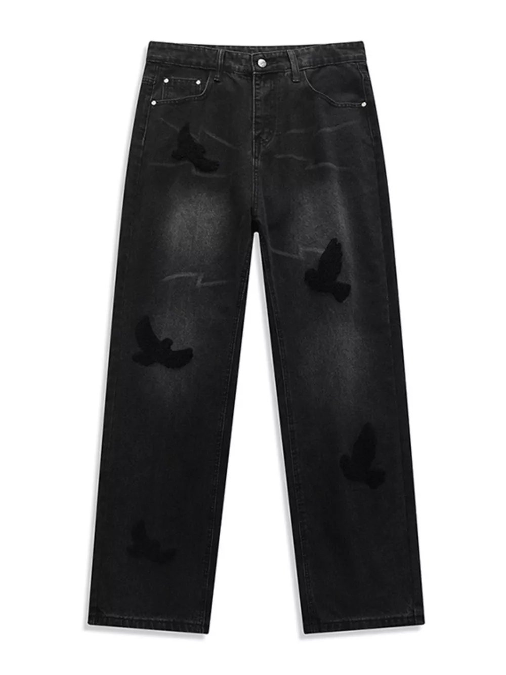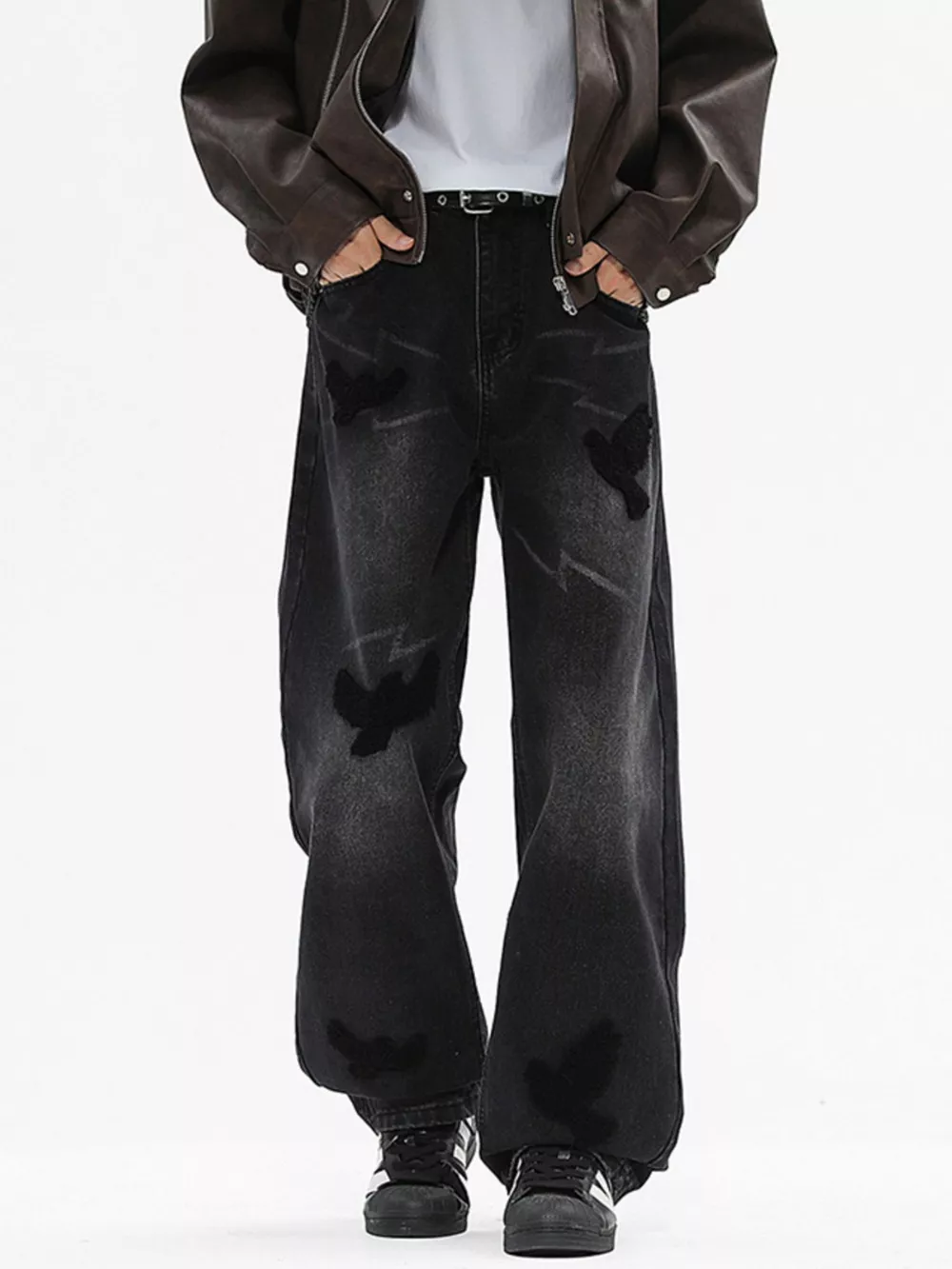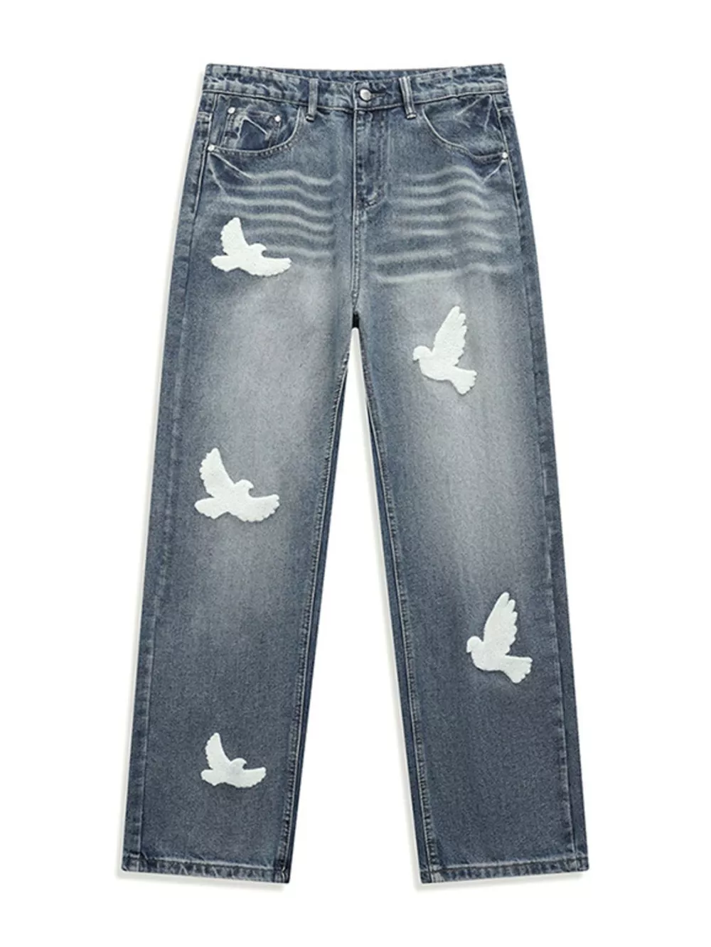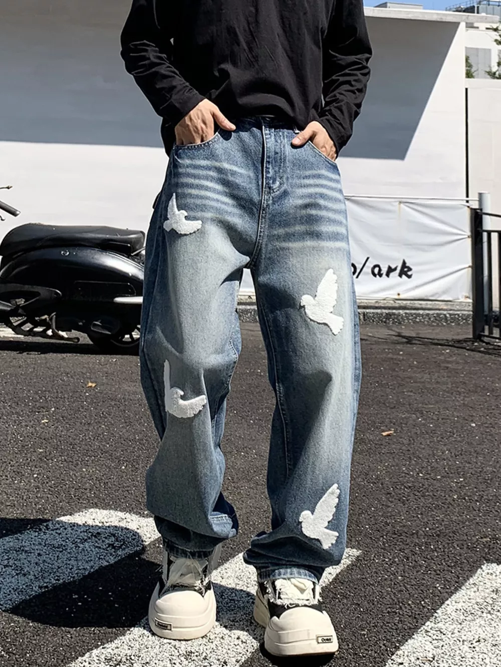 Men's Full Size Dove Applique Baggy Jeans Plus Size