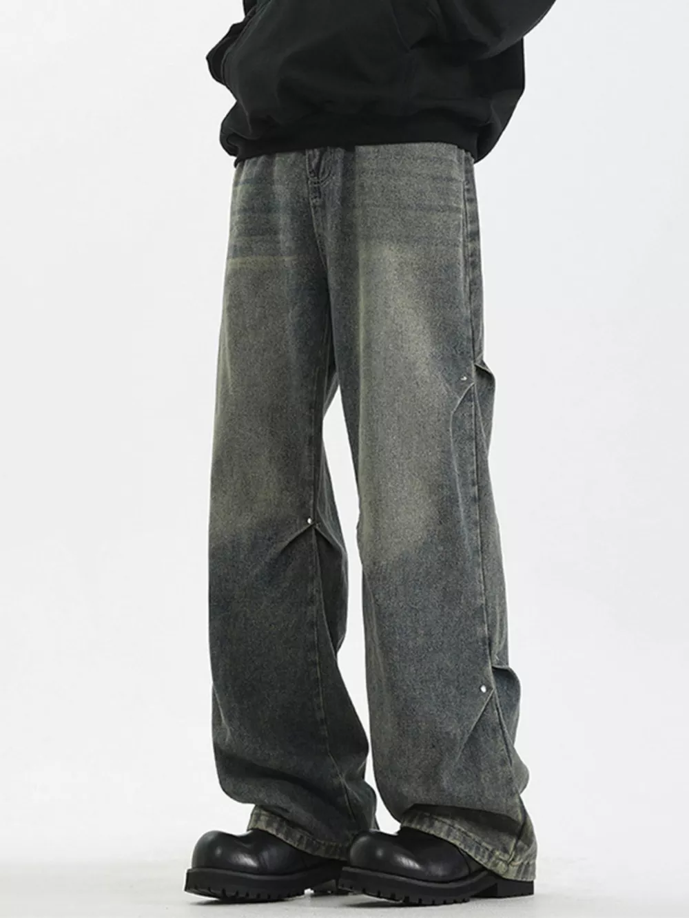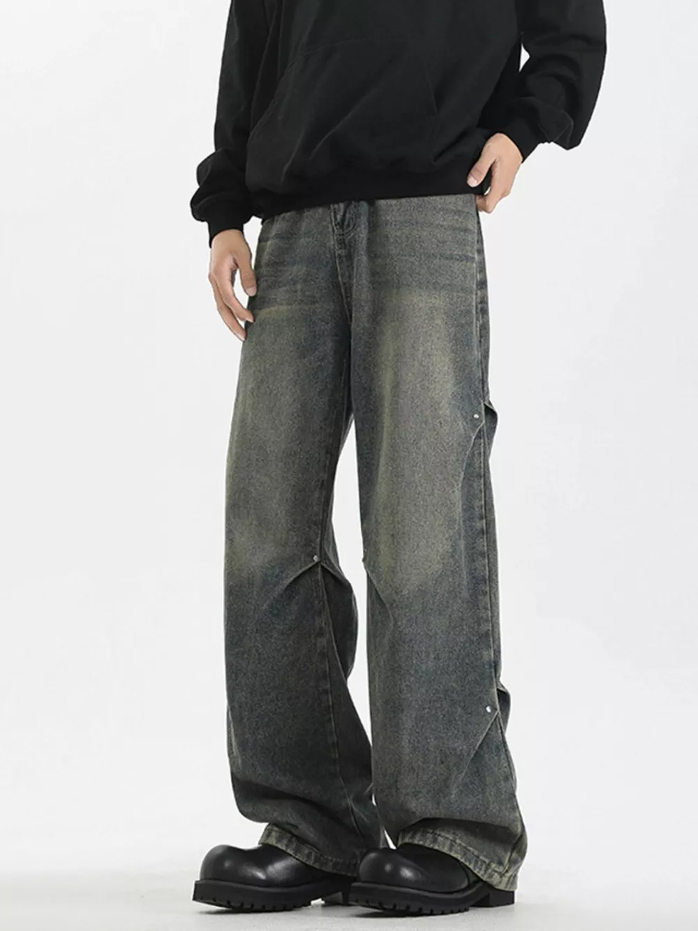 Men's Full Size Wash Wide Leg Jeans Plus Size