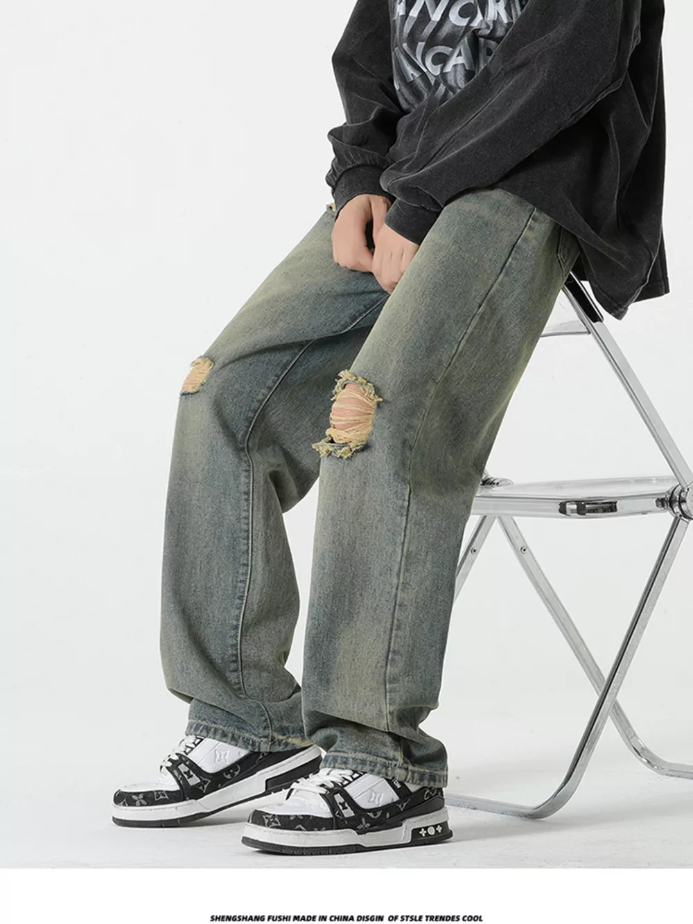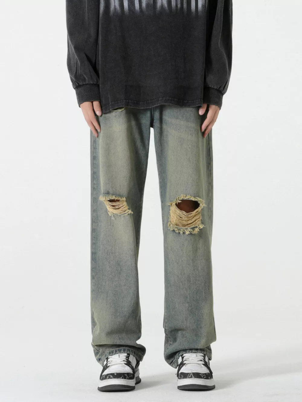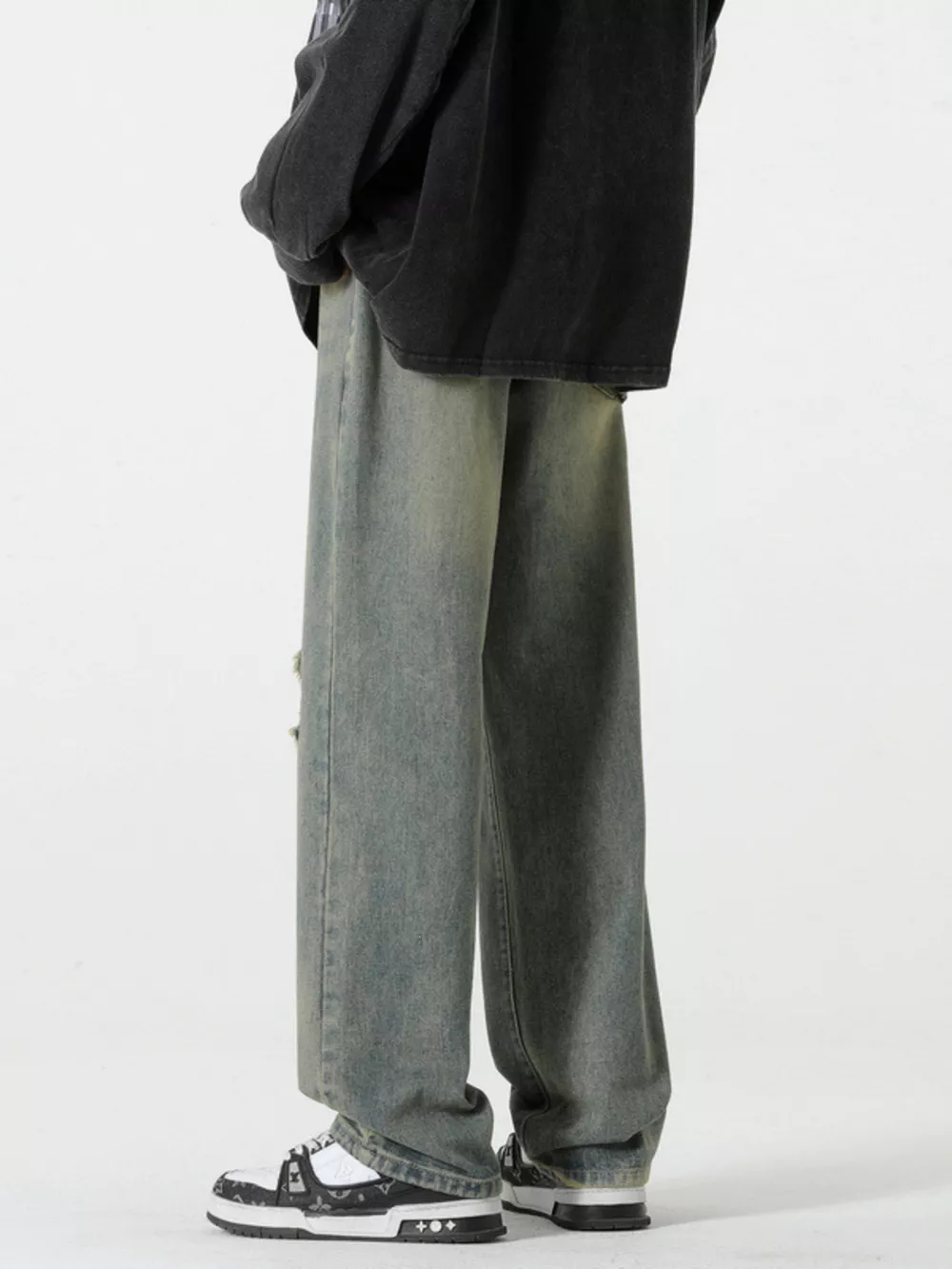 Men's Full Size Distressed Wide Leg Jeans Plus Size