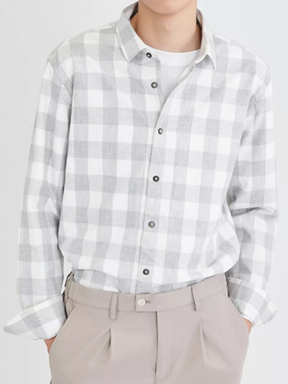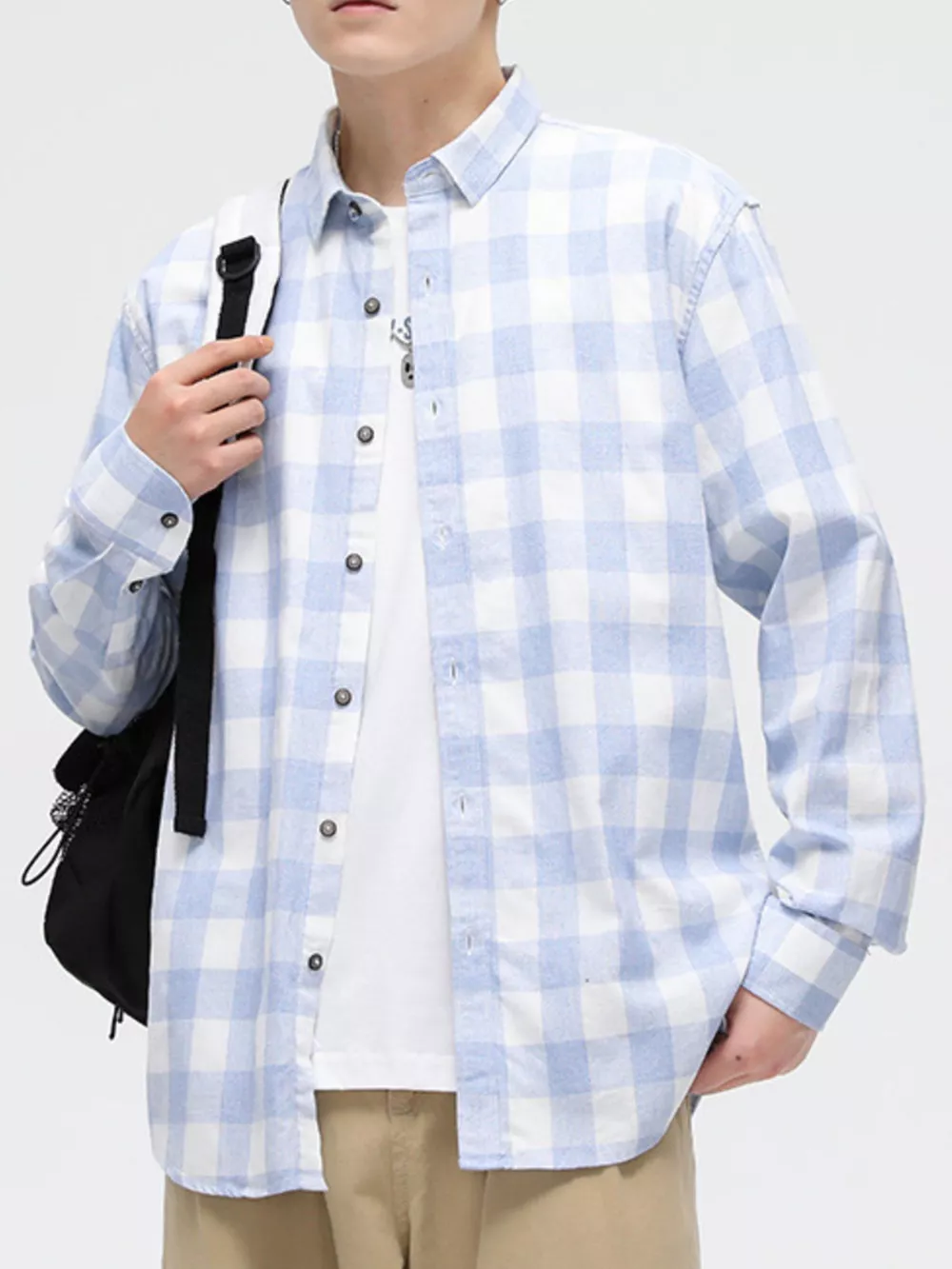 Men's Full Size Casual Plaid Button Up Shirt Plus Size