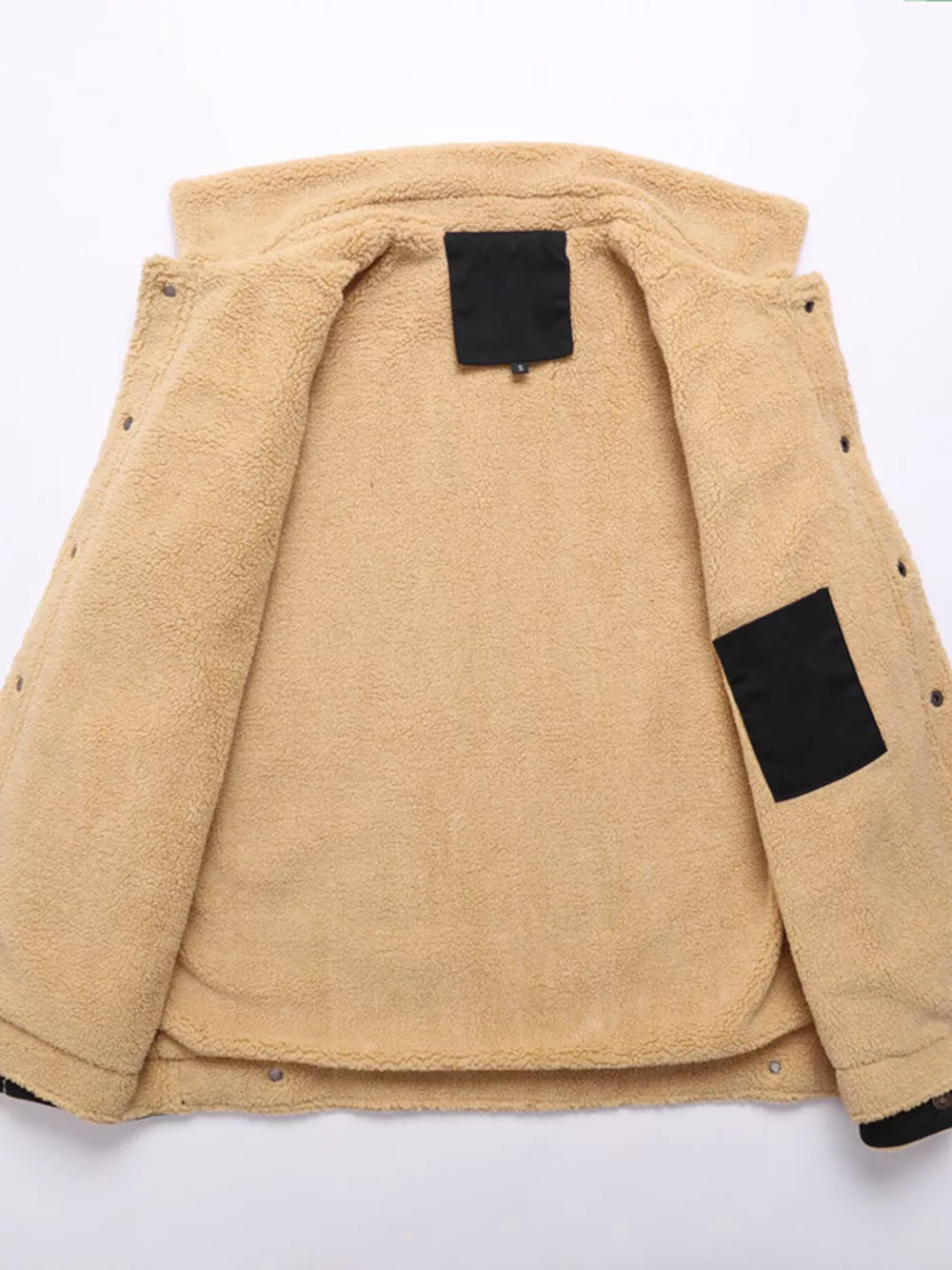 Men's Full Size Sherpa Lined Snap Down Jacket Plus Size