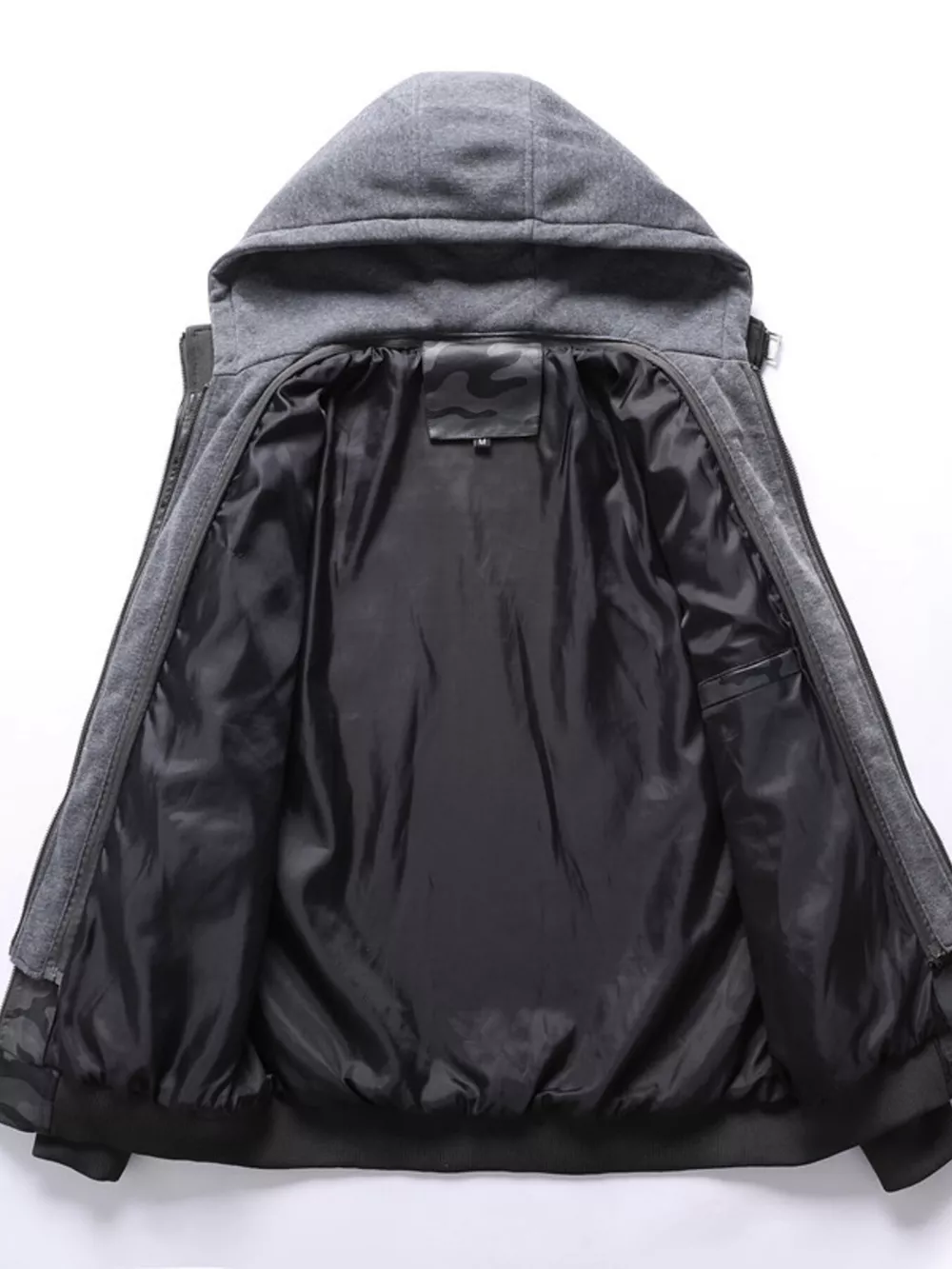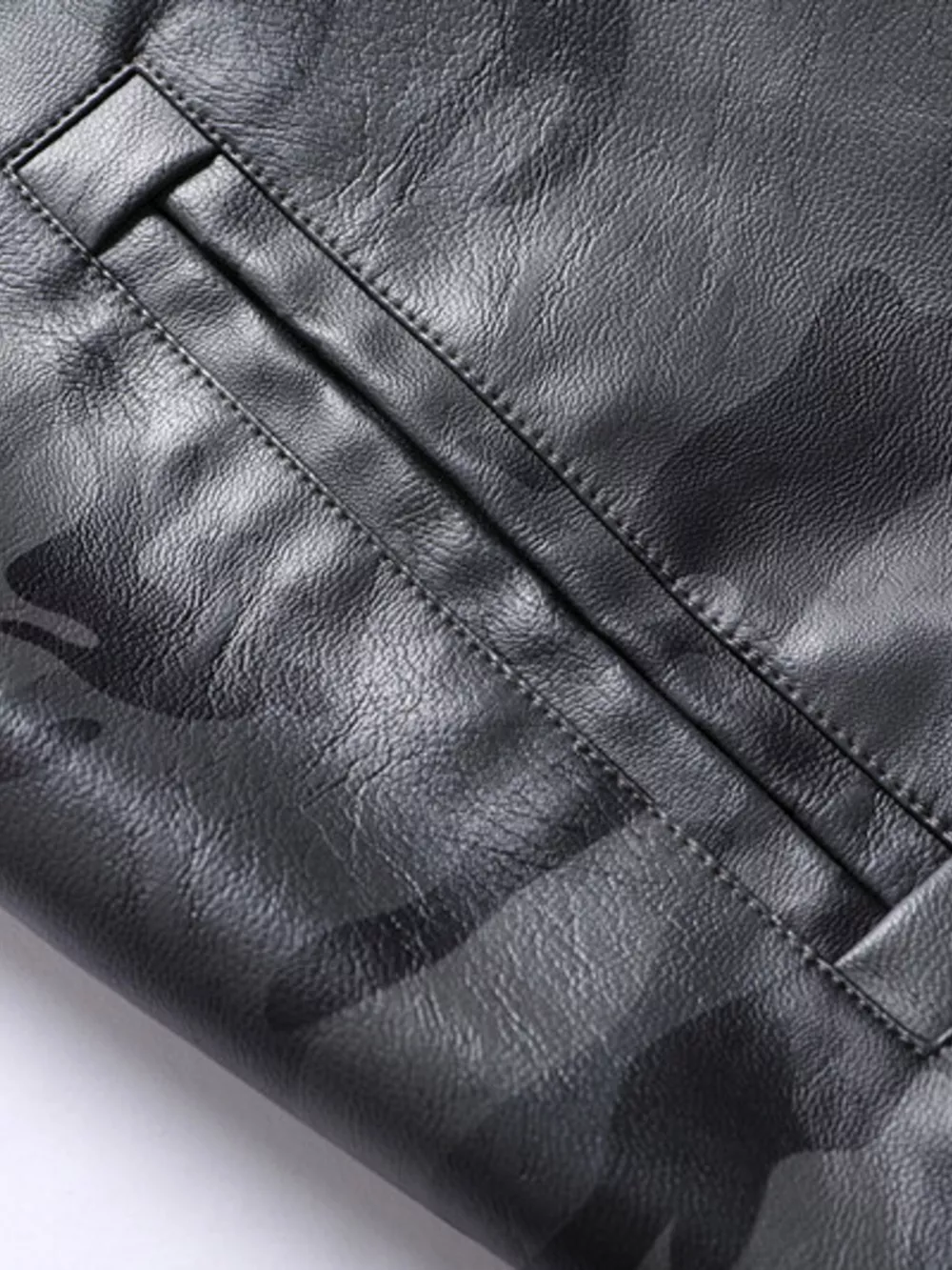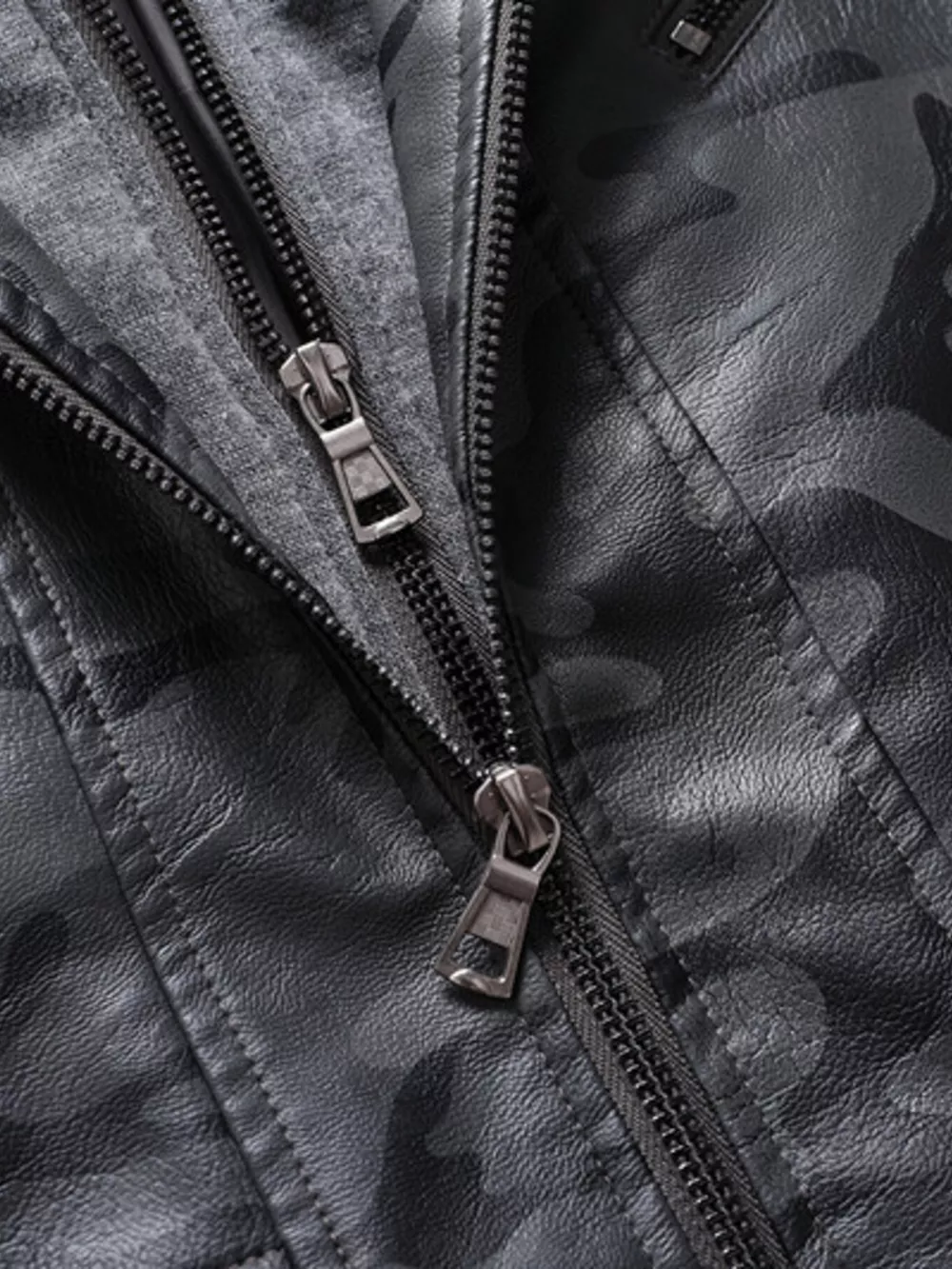 Men's Full Size Camouflage Hooded Faux Leather Jacket Plus Size