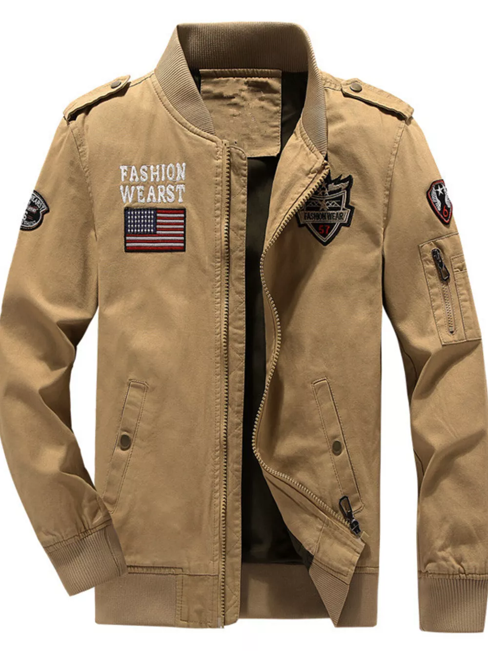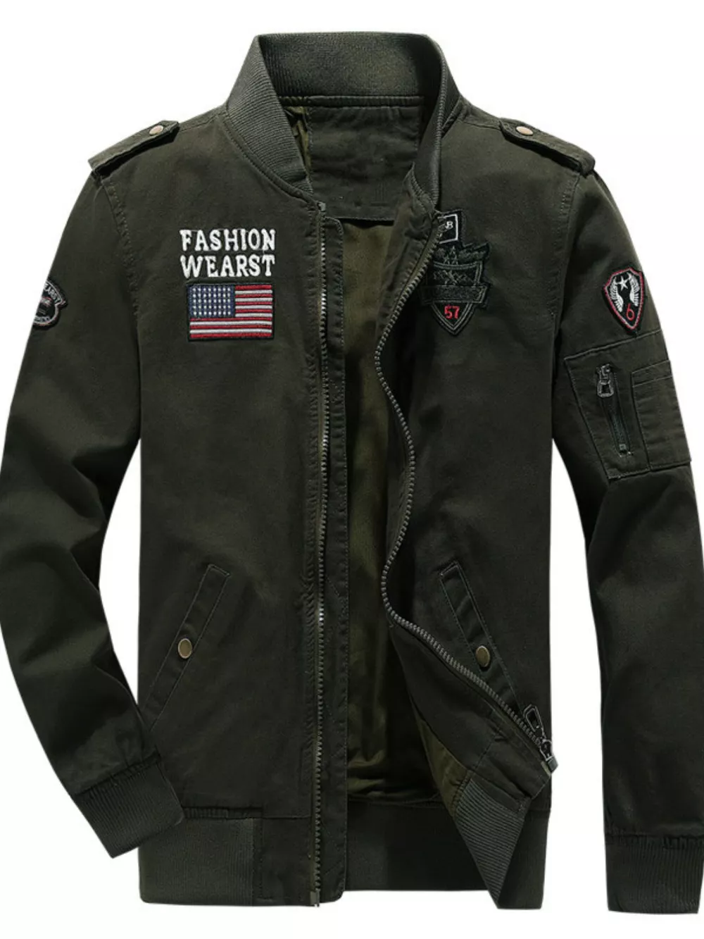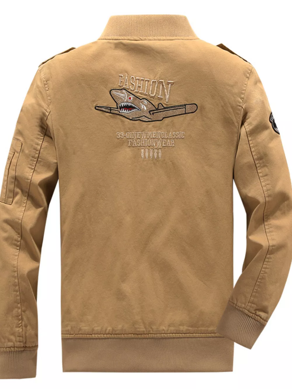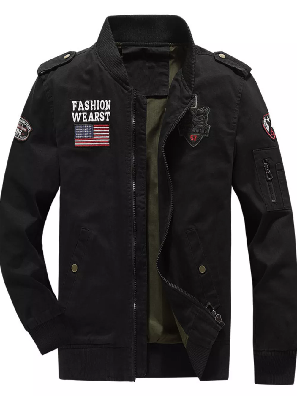 Men's Plus Size Zip Up Embroidered Bomber Jacket