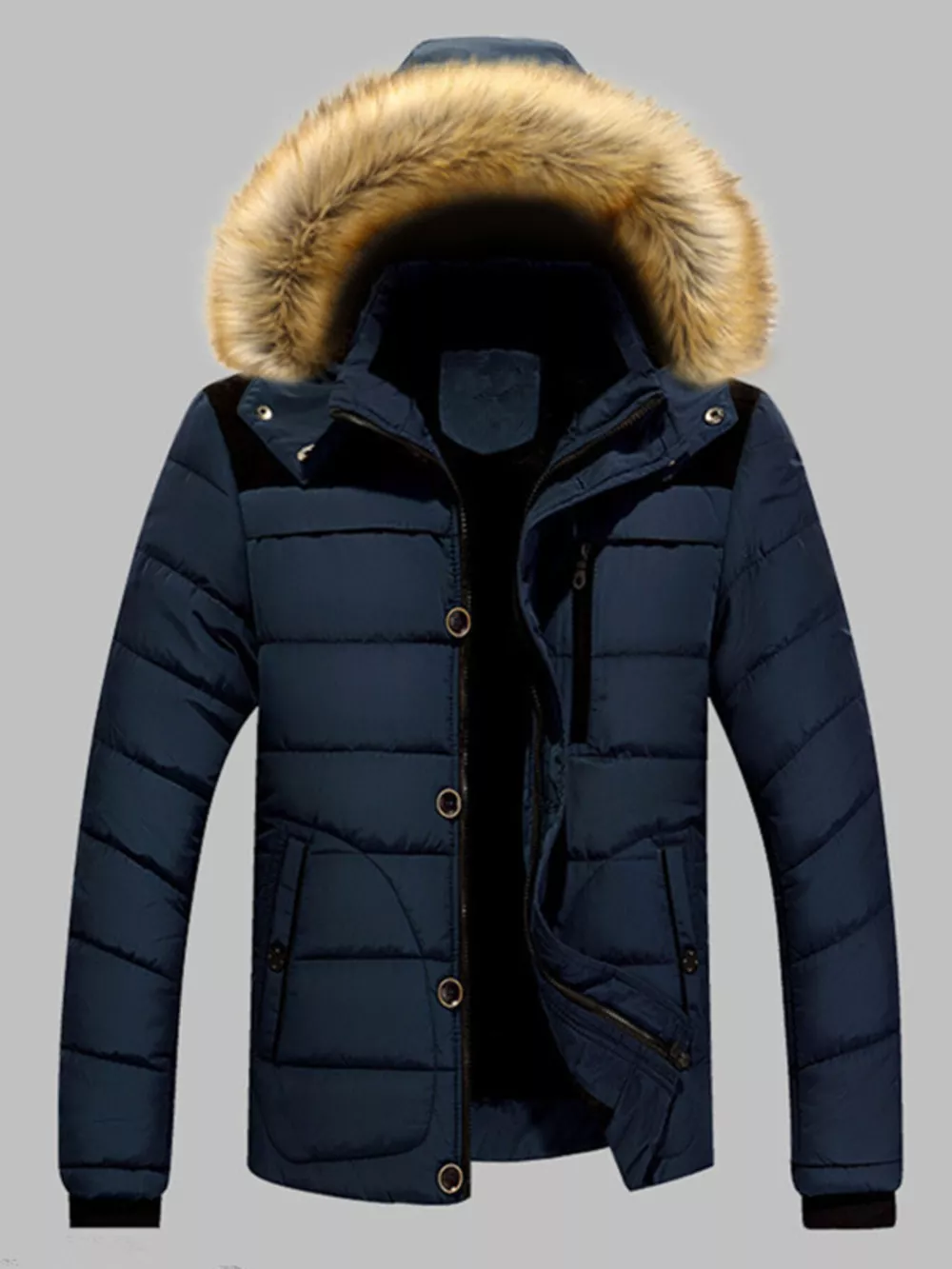 Men's Plus Size Padded Fur Hood Puffer Jacket