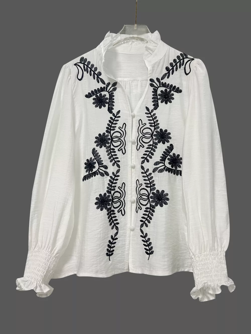 - Features:Buttoned,Ruched,Frill,Embroidered