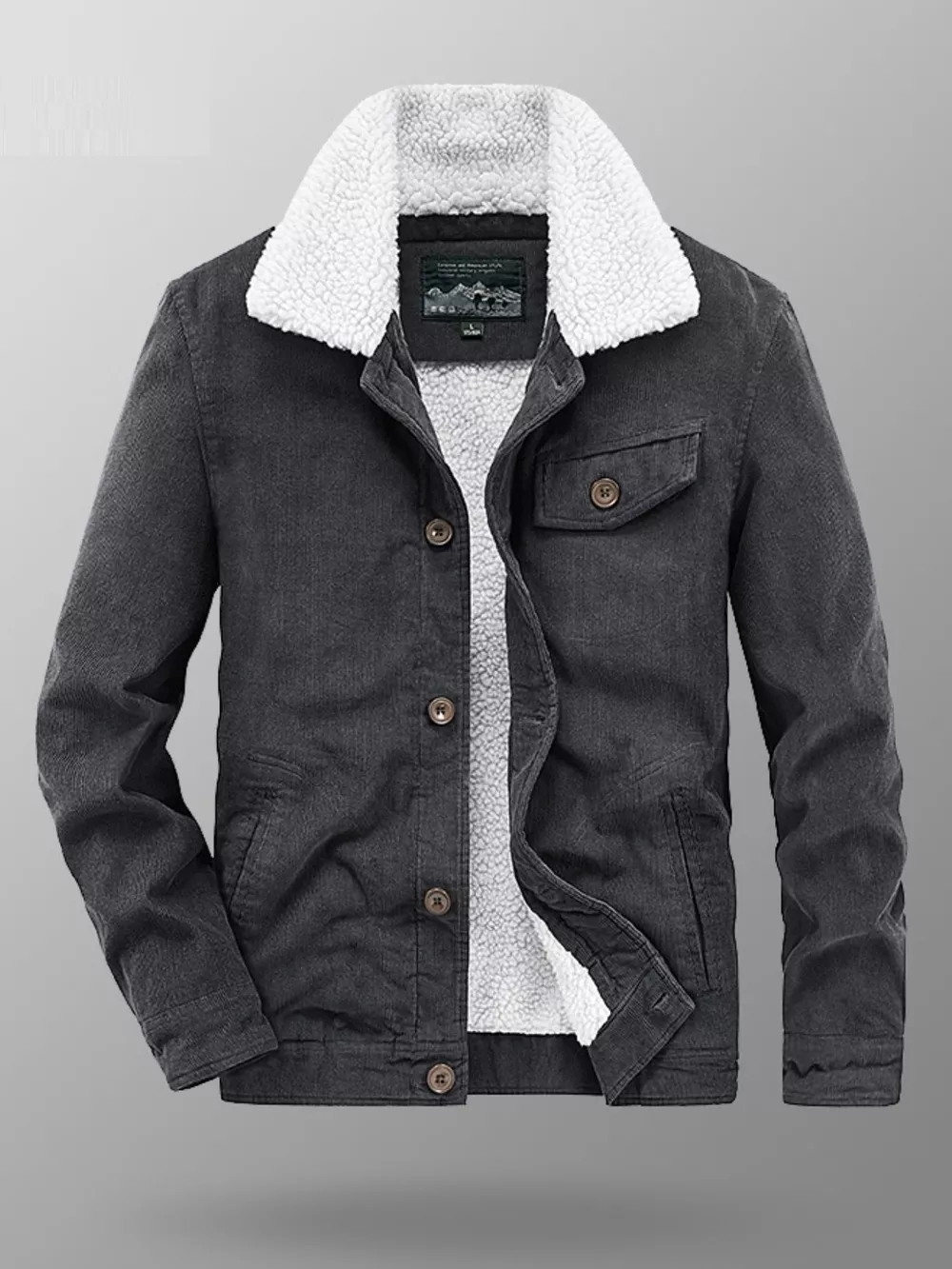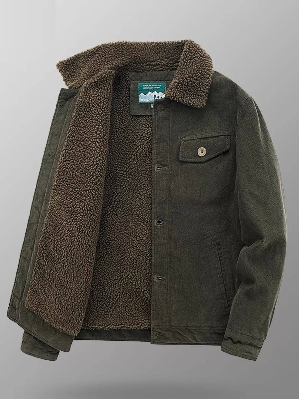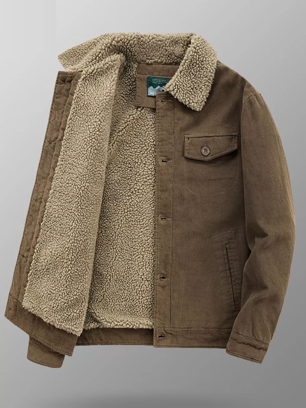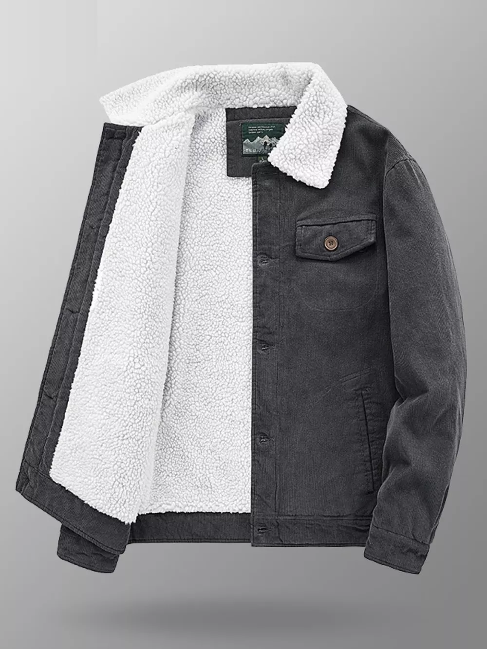 Men's Plus Size Button Up Sherpa Lined Jacket