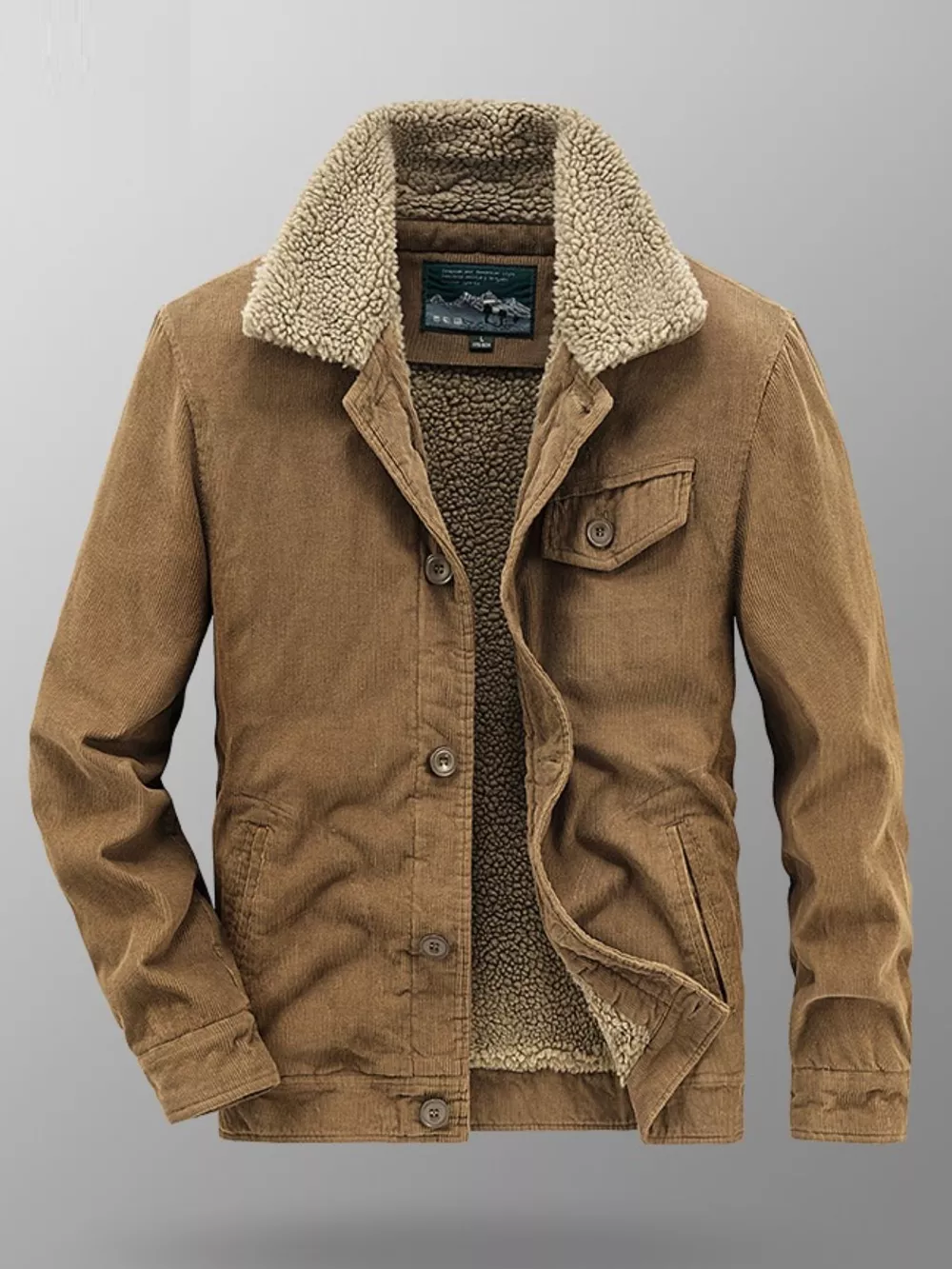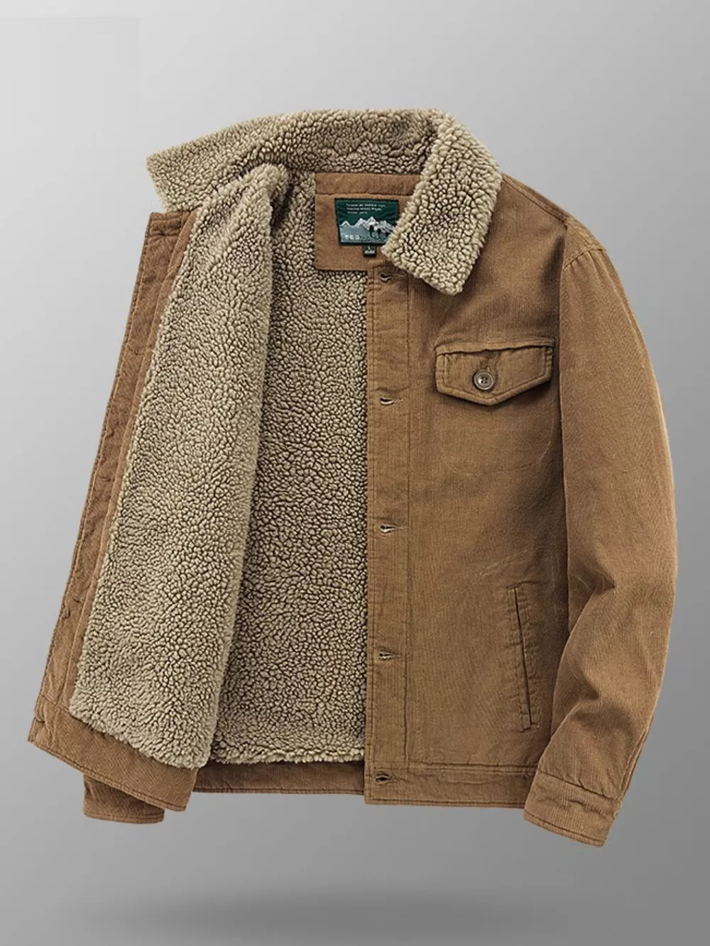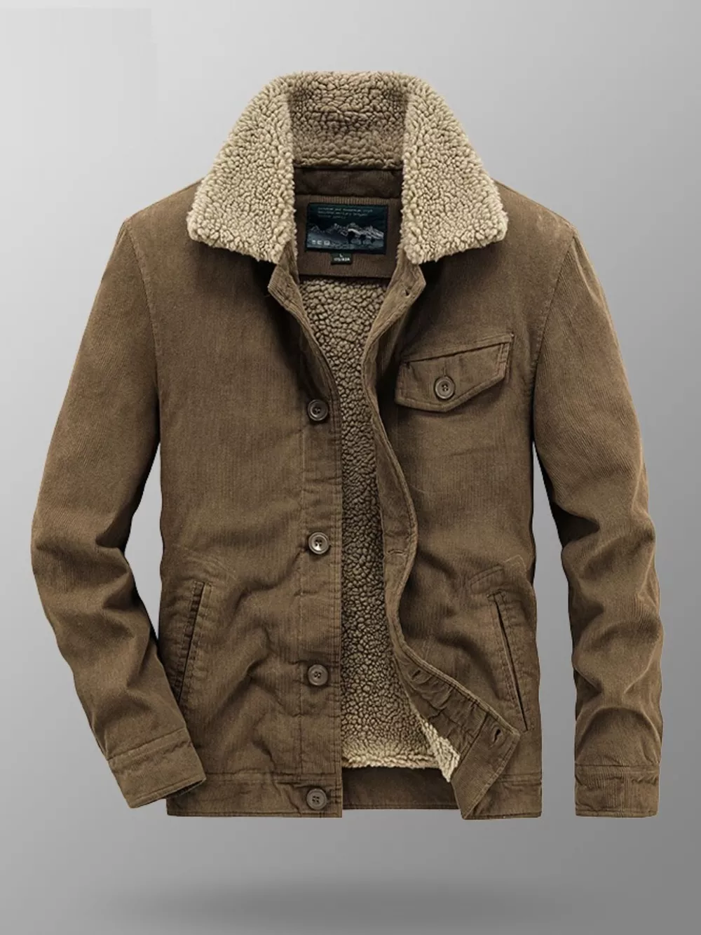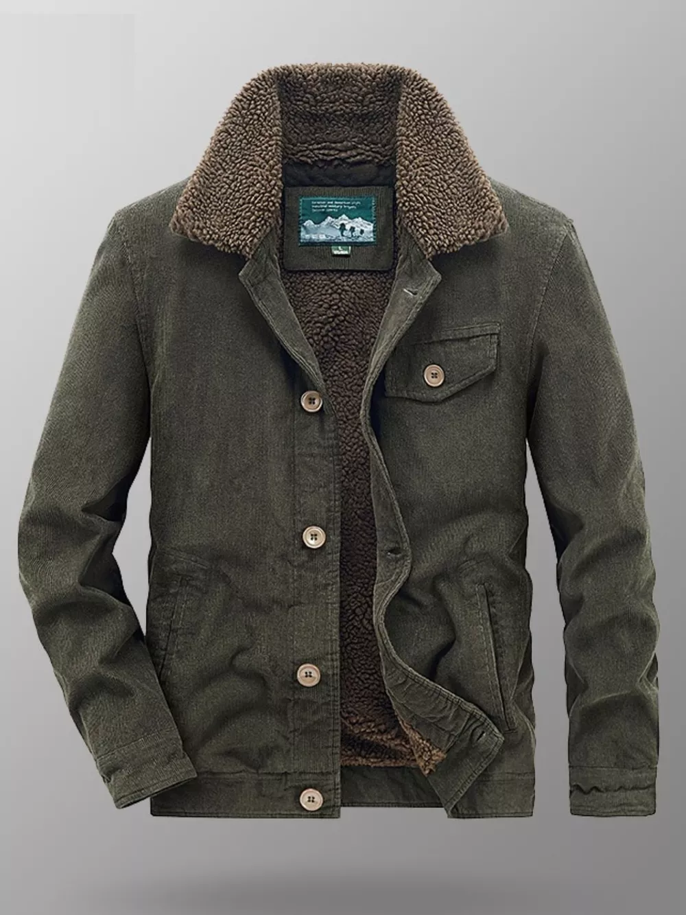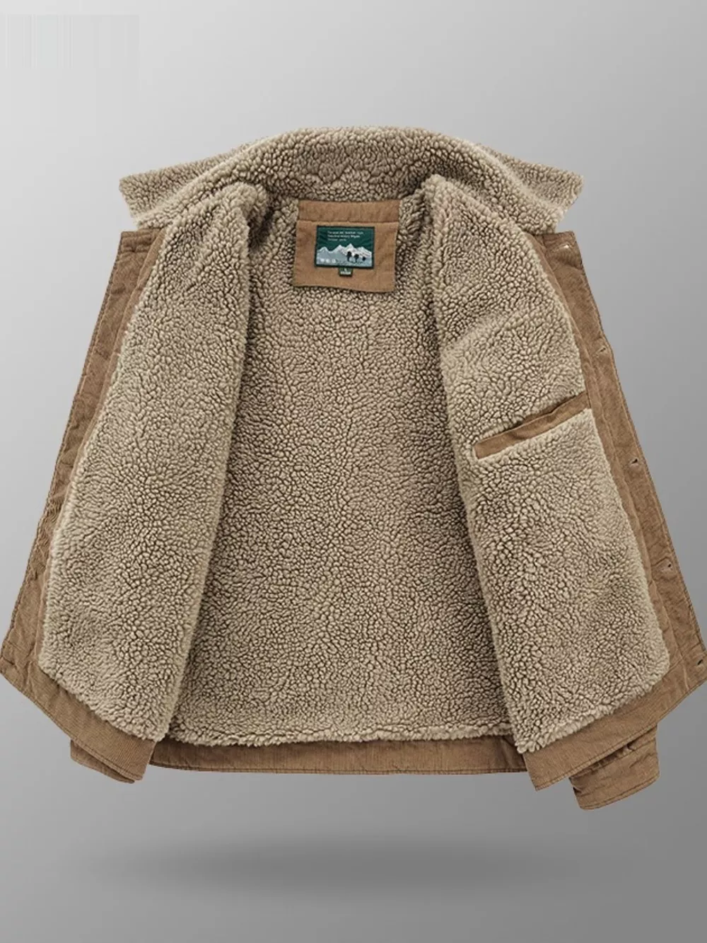 Men's Plus Size Button Up Sherpa Lined Jacket