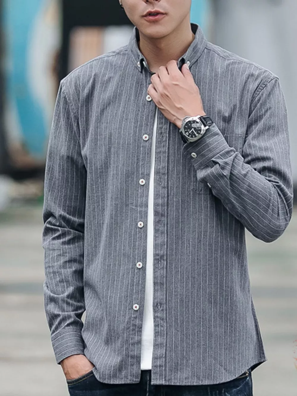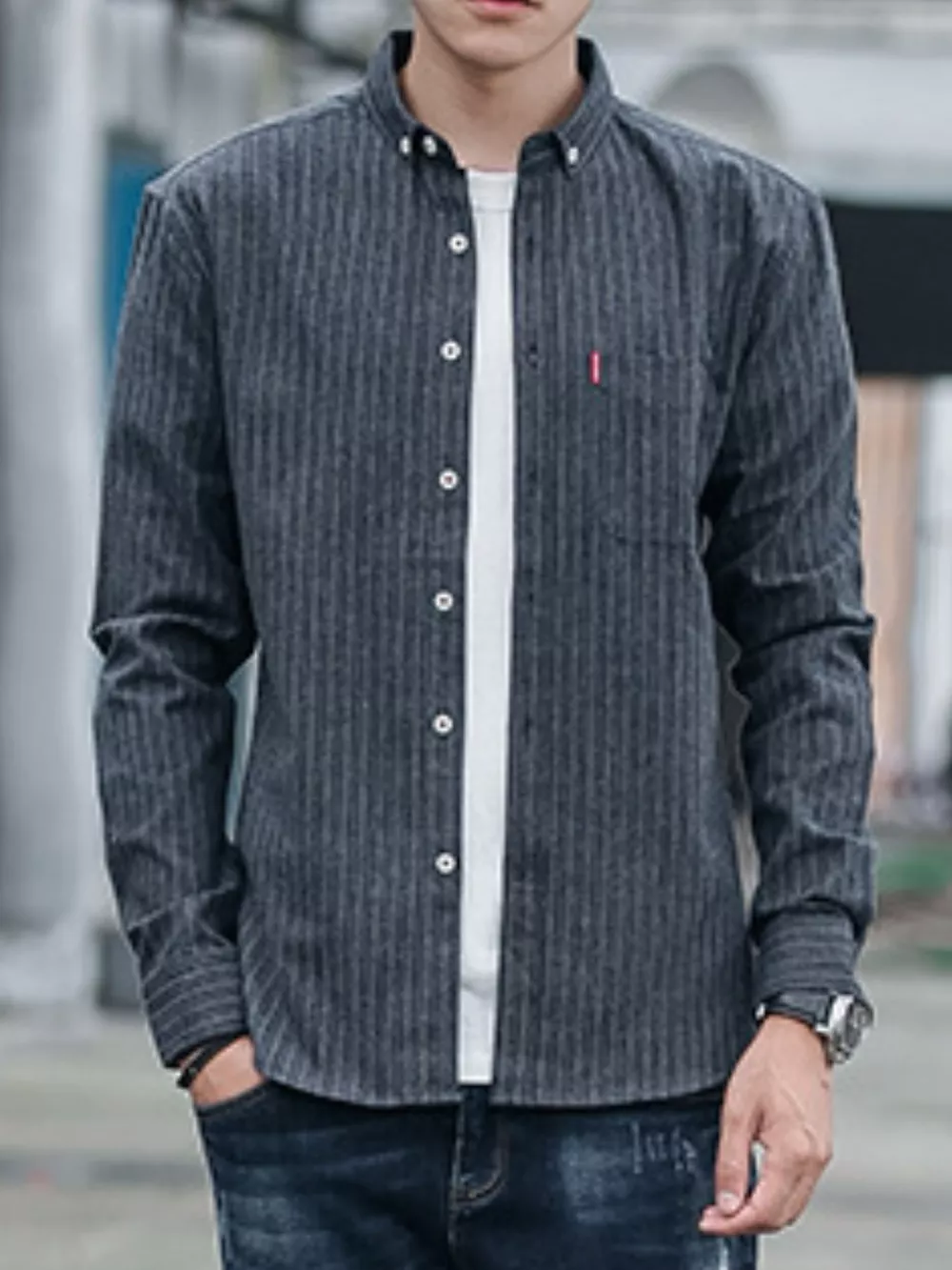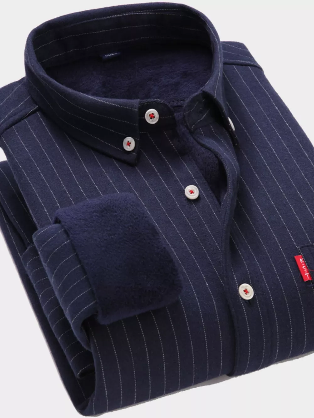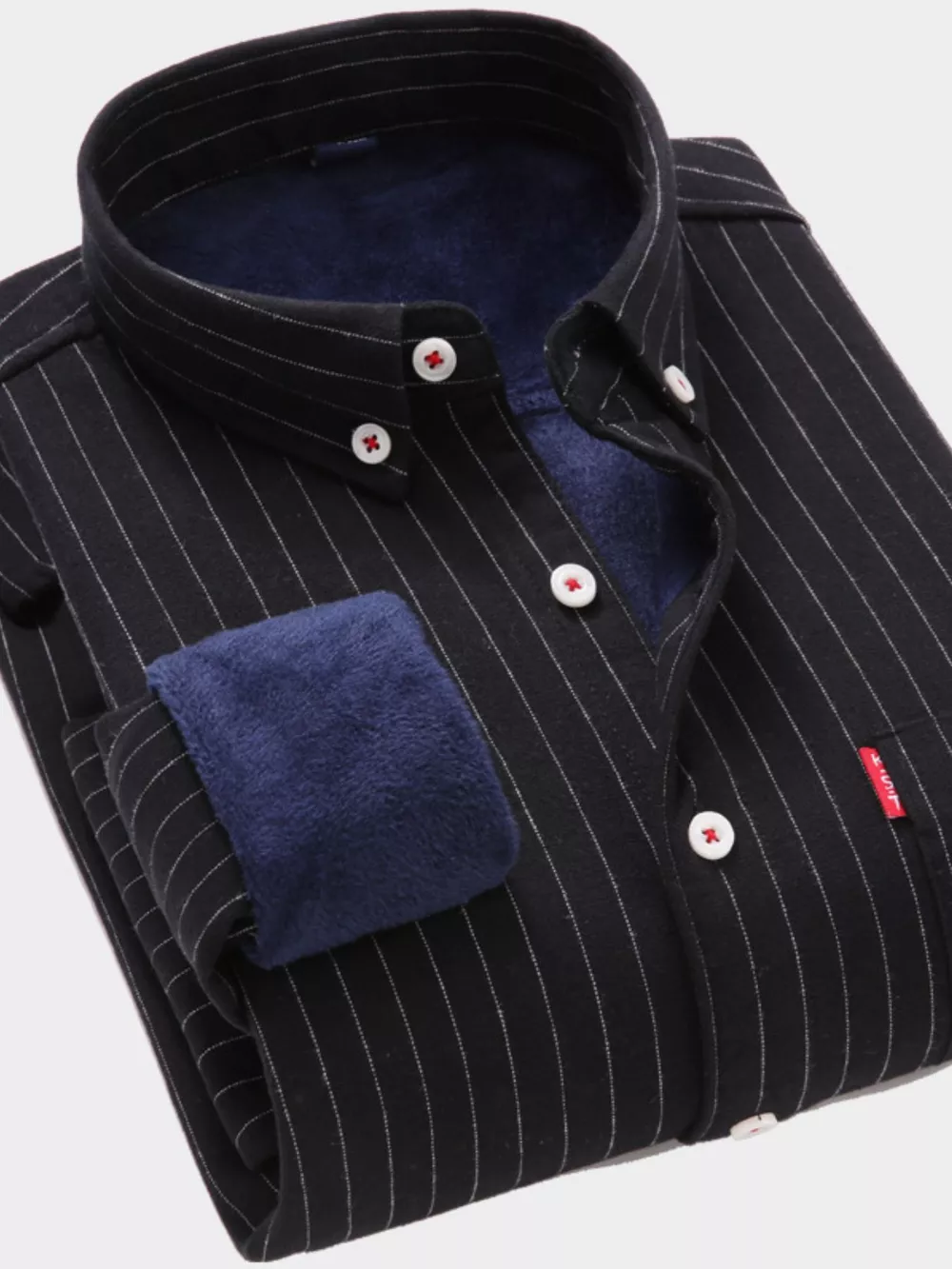 Men's Full Size Fleece Lined Striped Shirt Plus Size