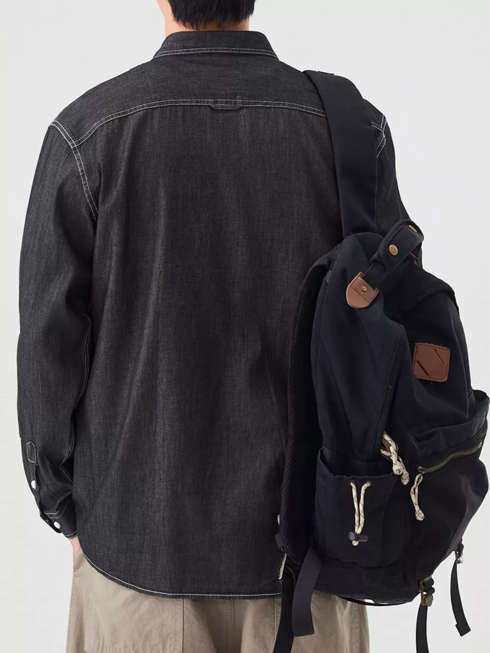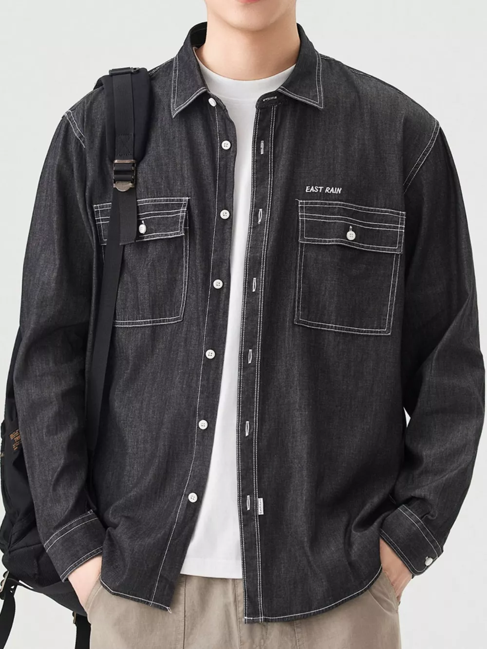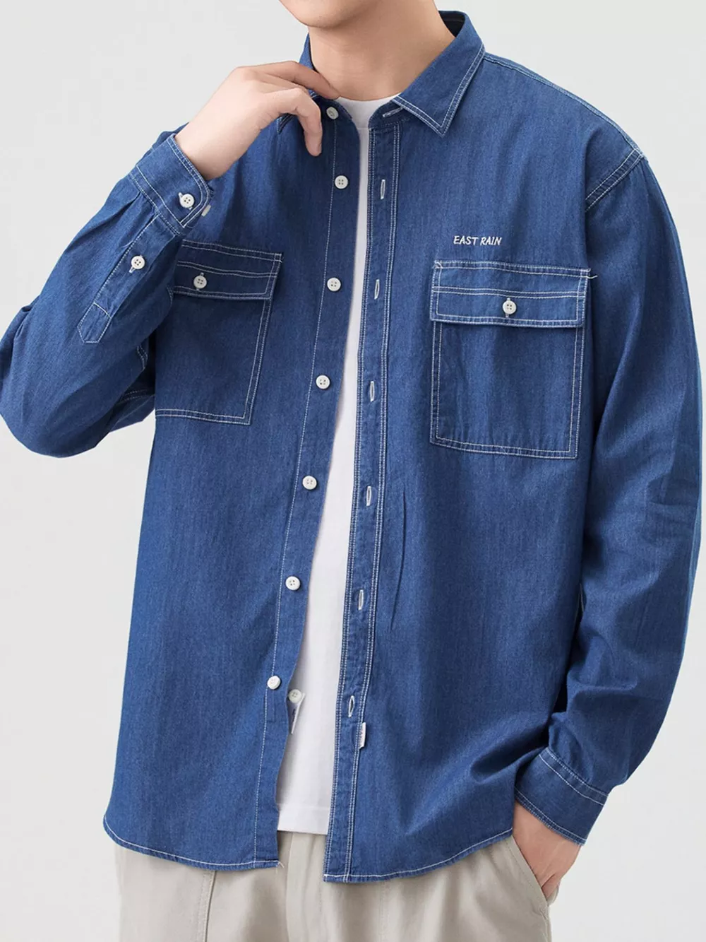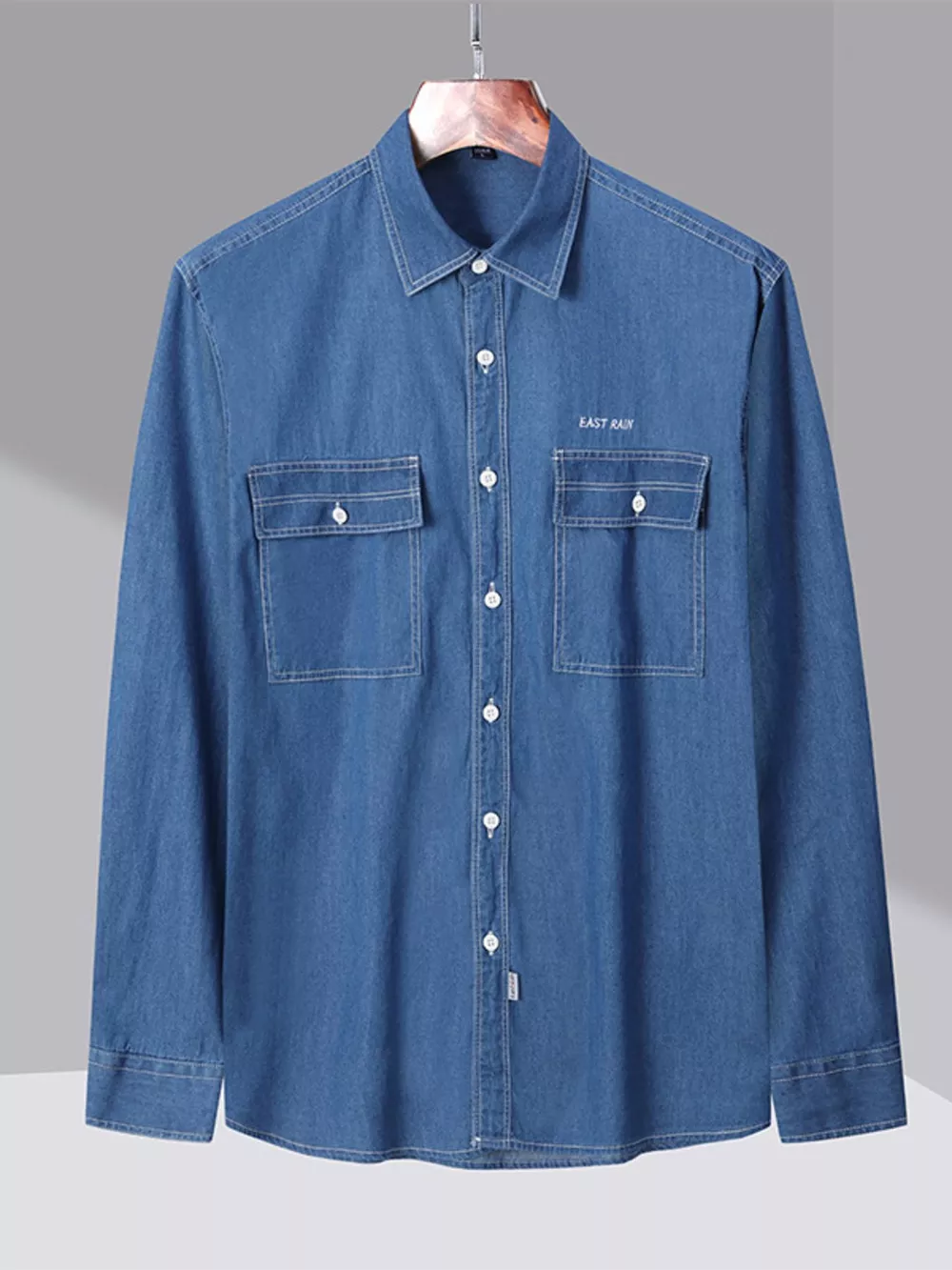 Men's Full Size Casual Long Sleeve Denim Shirt with Pockets Plus Size