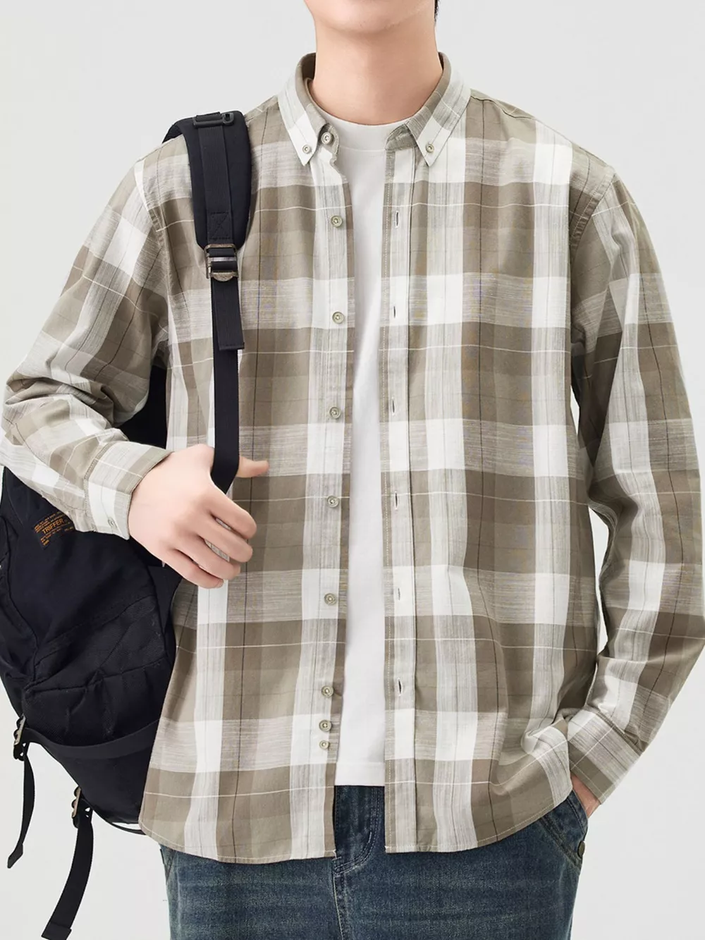 Men's Full Size Casual Plaid Long Sleeve Shirt Plus Size