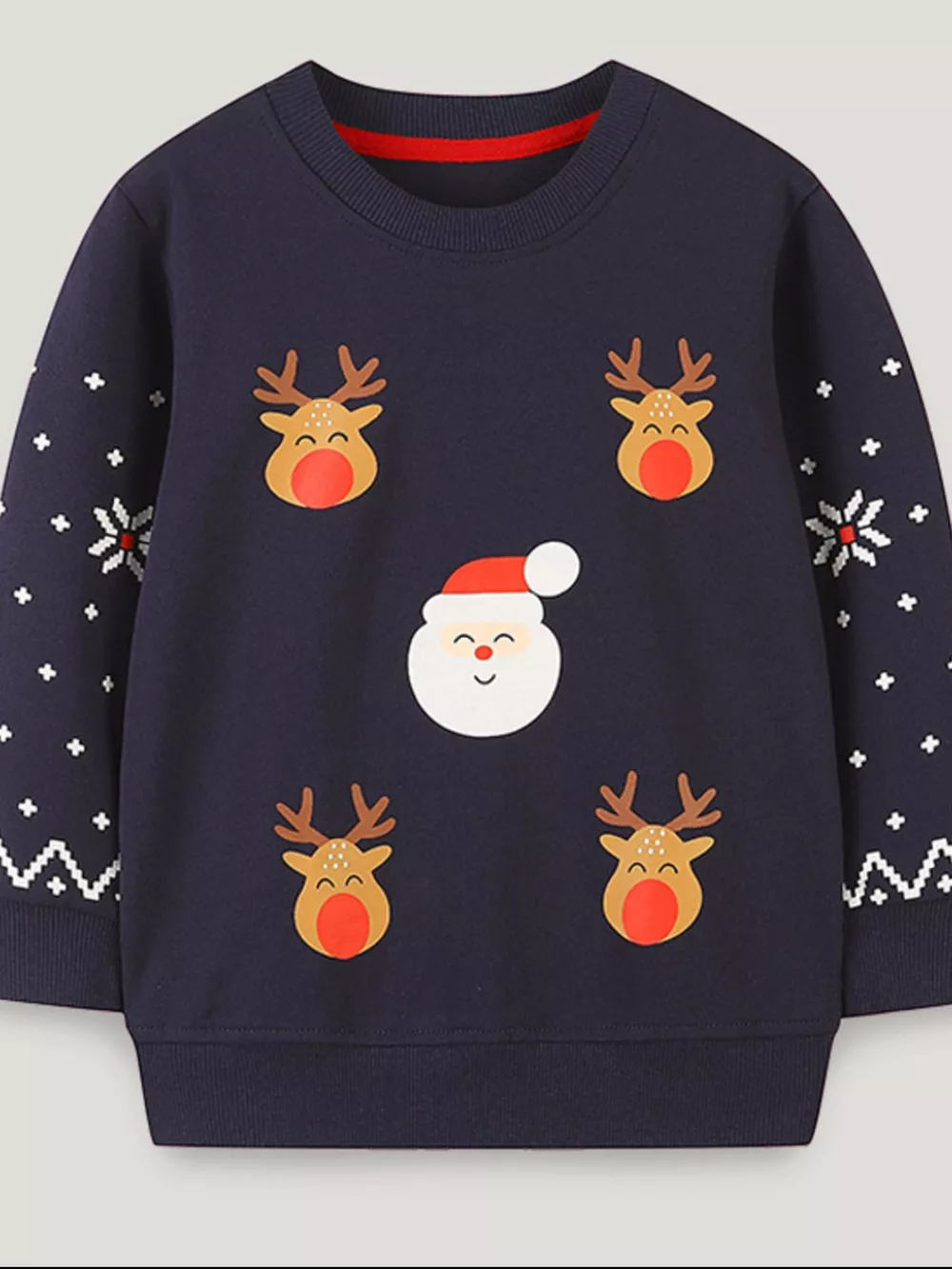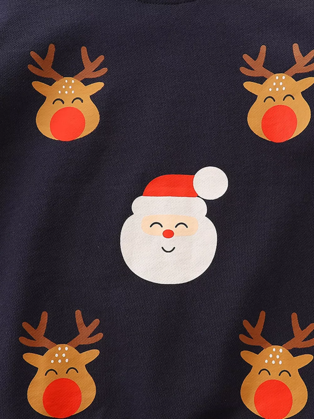 Children's Christmas Reindeer & Santa Round Neck Sweatshirt