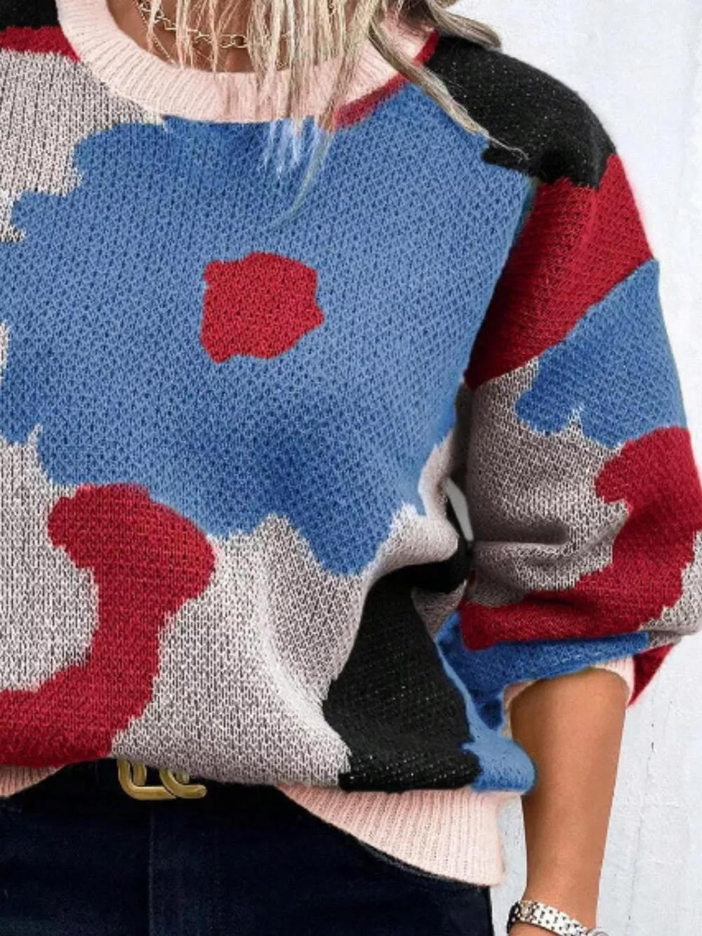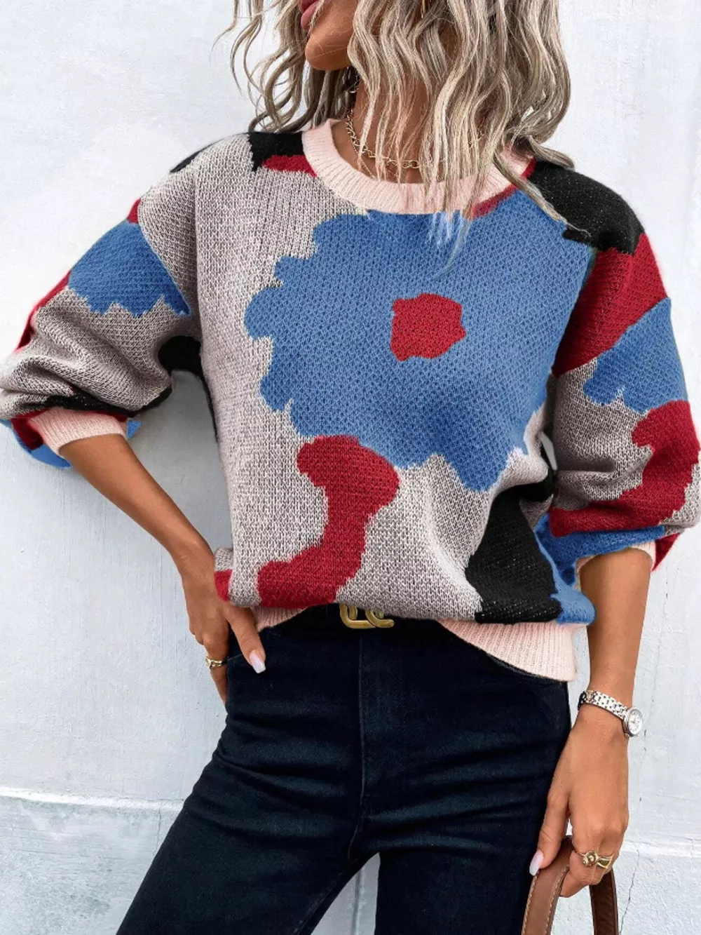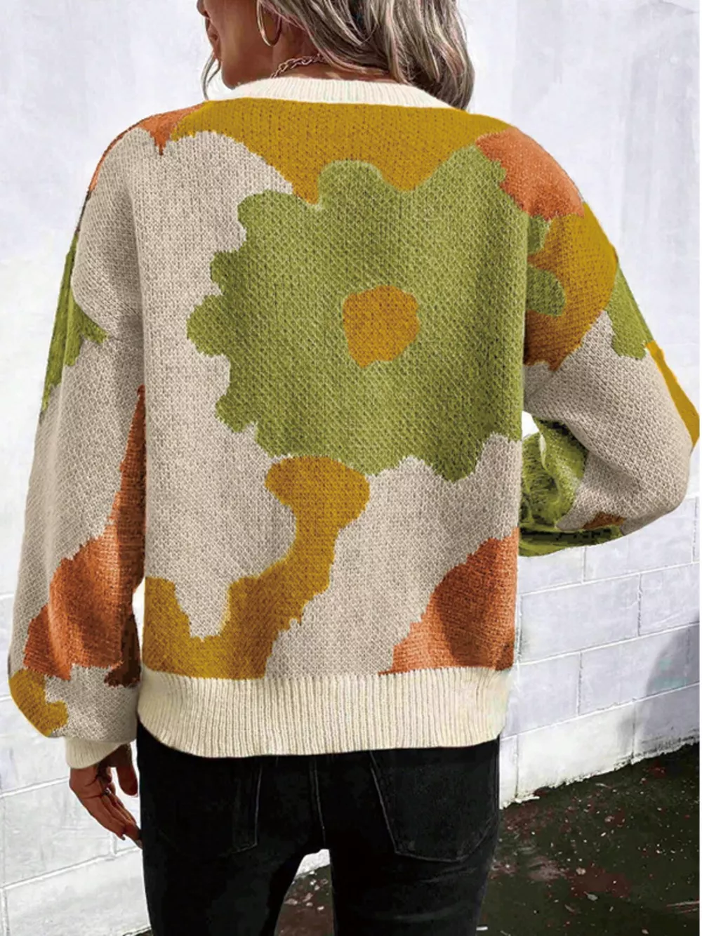 Floral Pattern Round Neck Sweater
