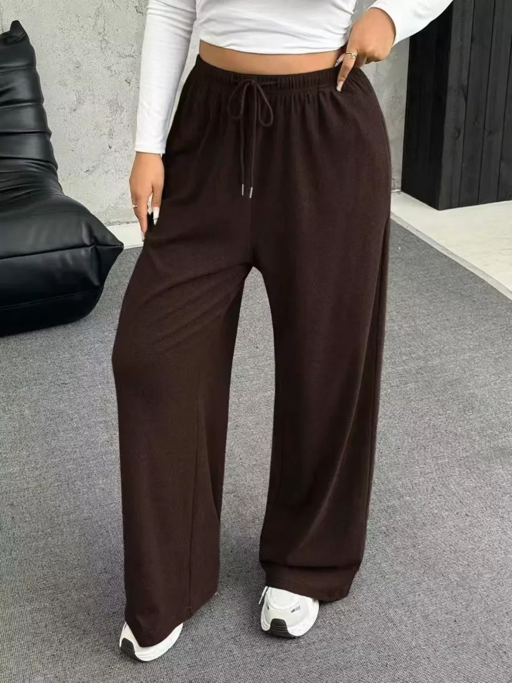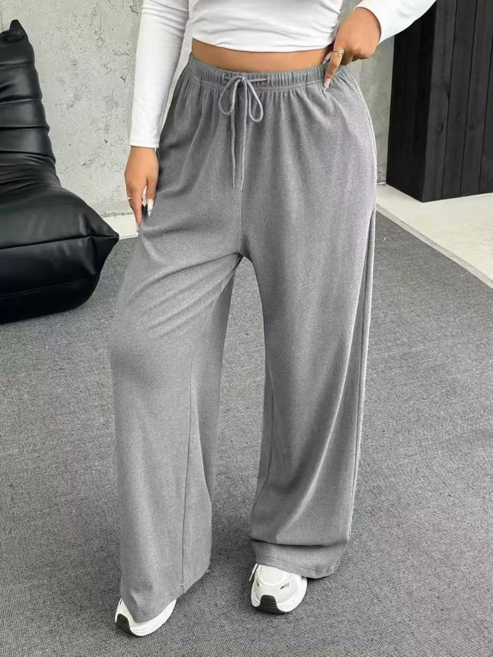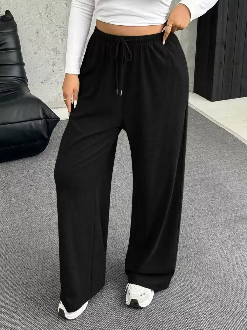 Full Size Drawstring Wide Leg Pants Plus Size