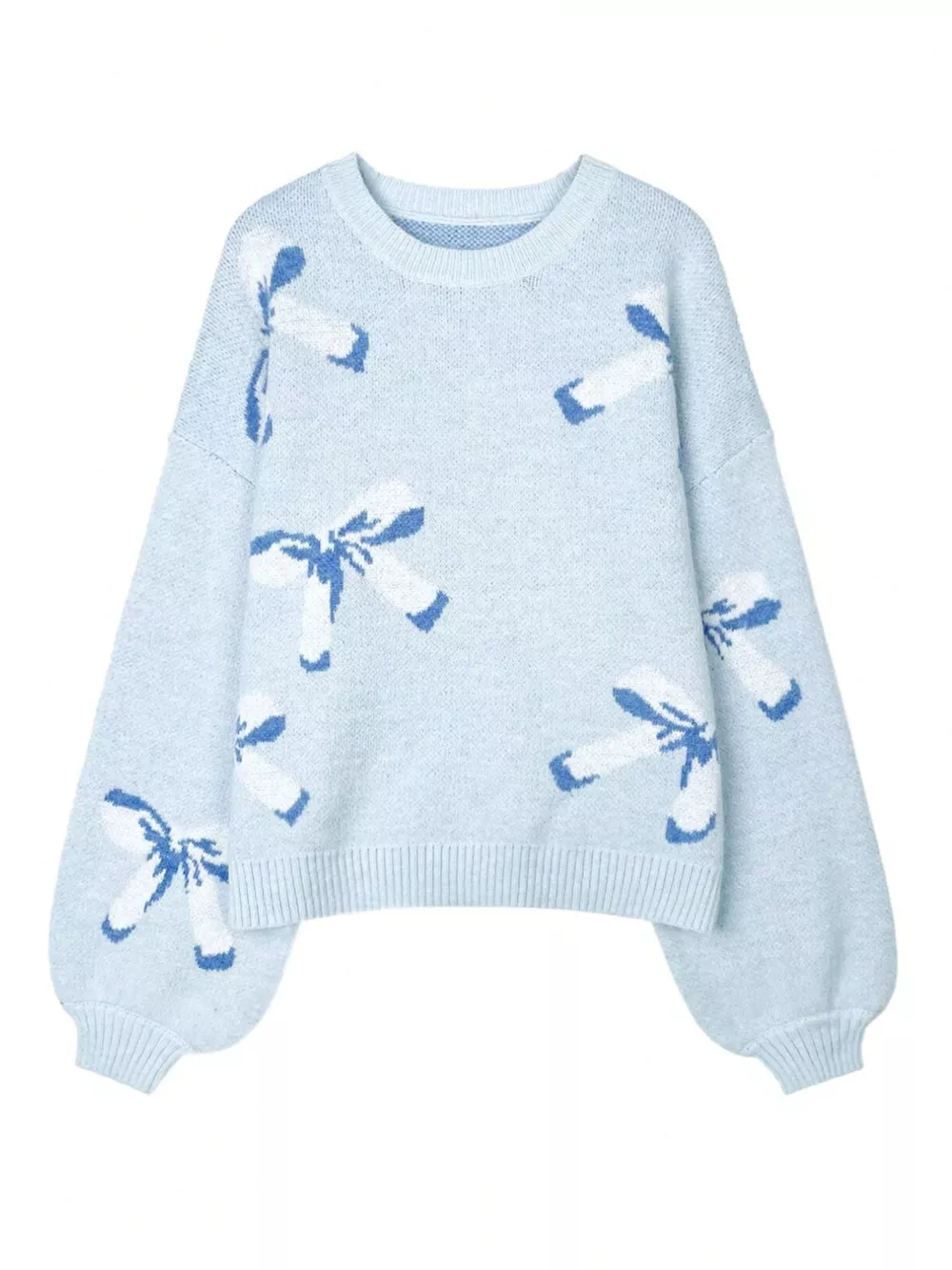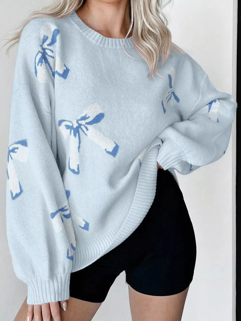 Bow Round Neck Dropped Shoulder Sweater