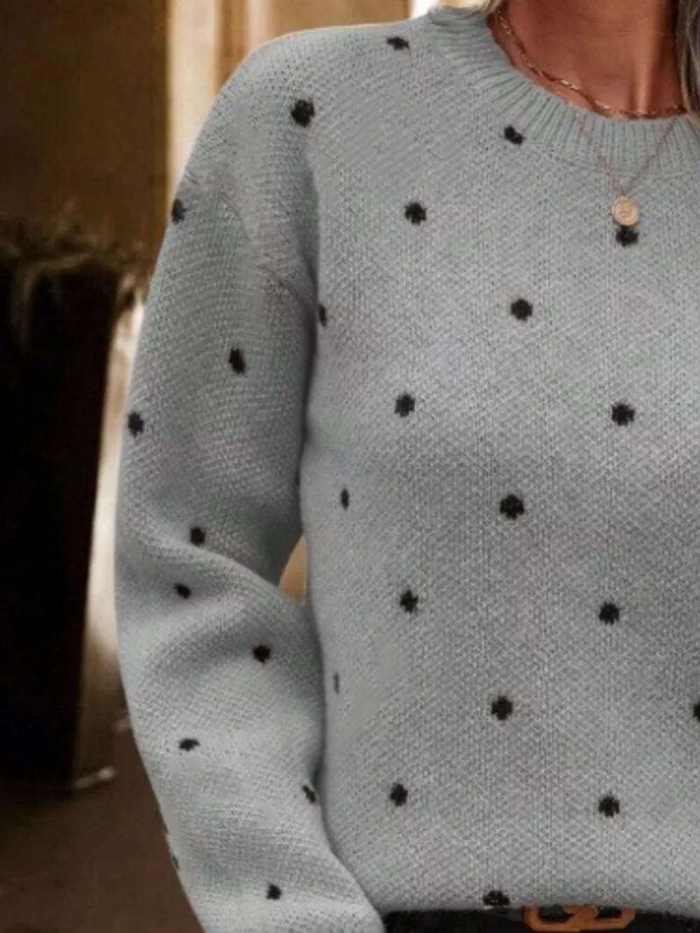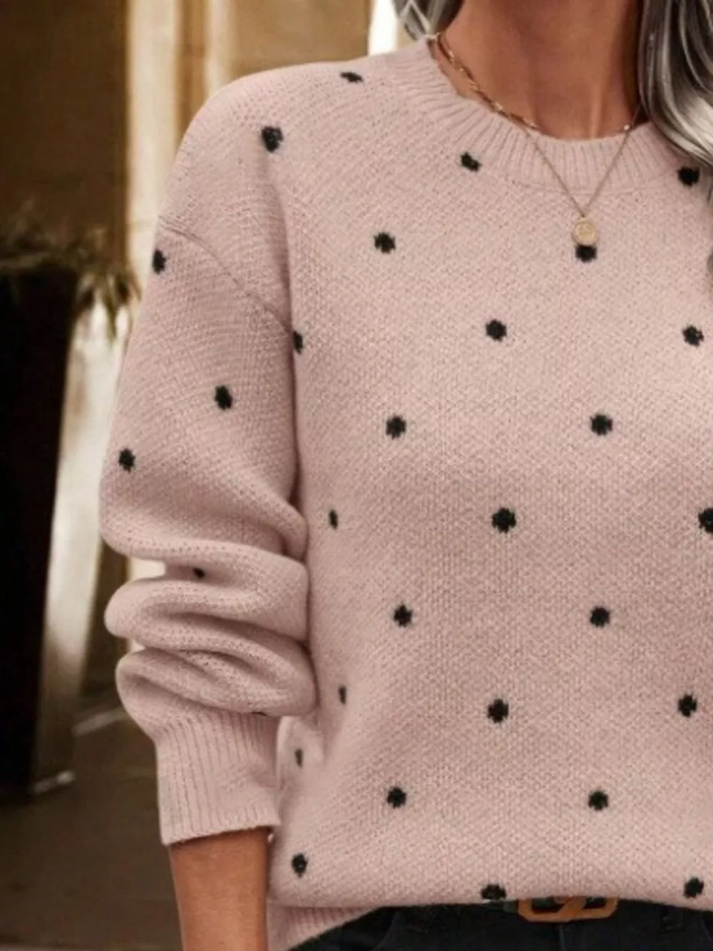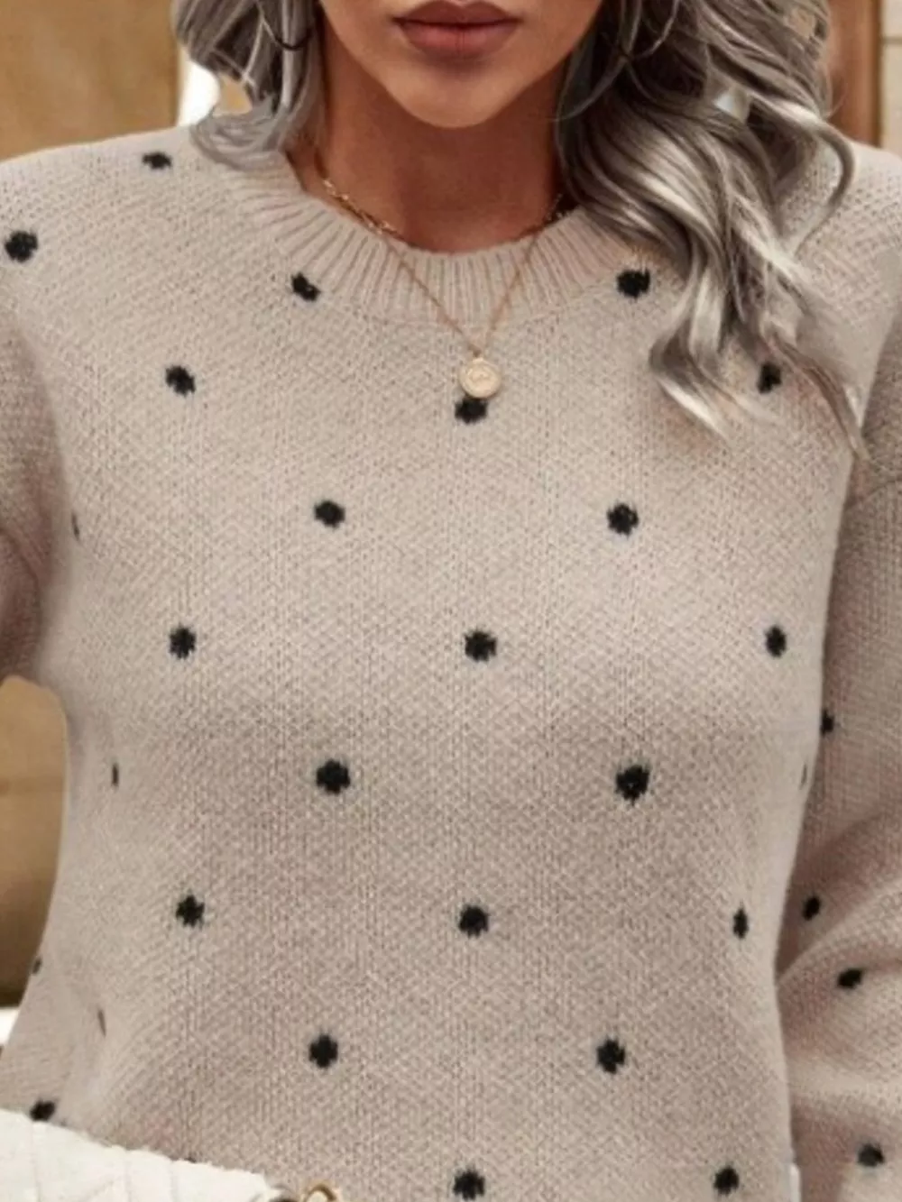 Polka Dot Round Neck Sweater