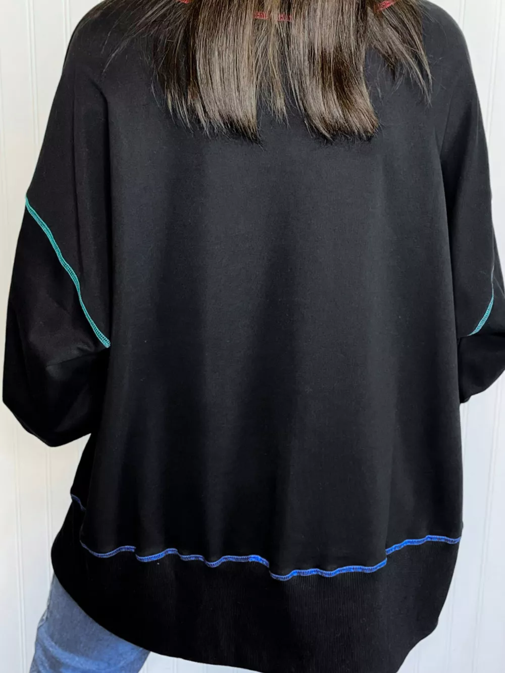 Sequin Joy Letter Graphic Contrast Seam Detail Drop Shoulder Sweatshirt