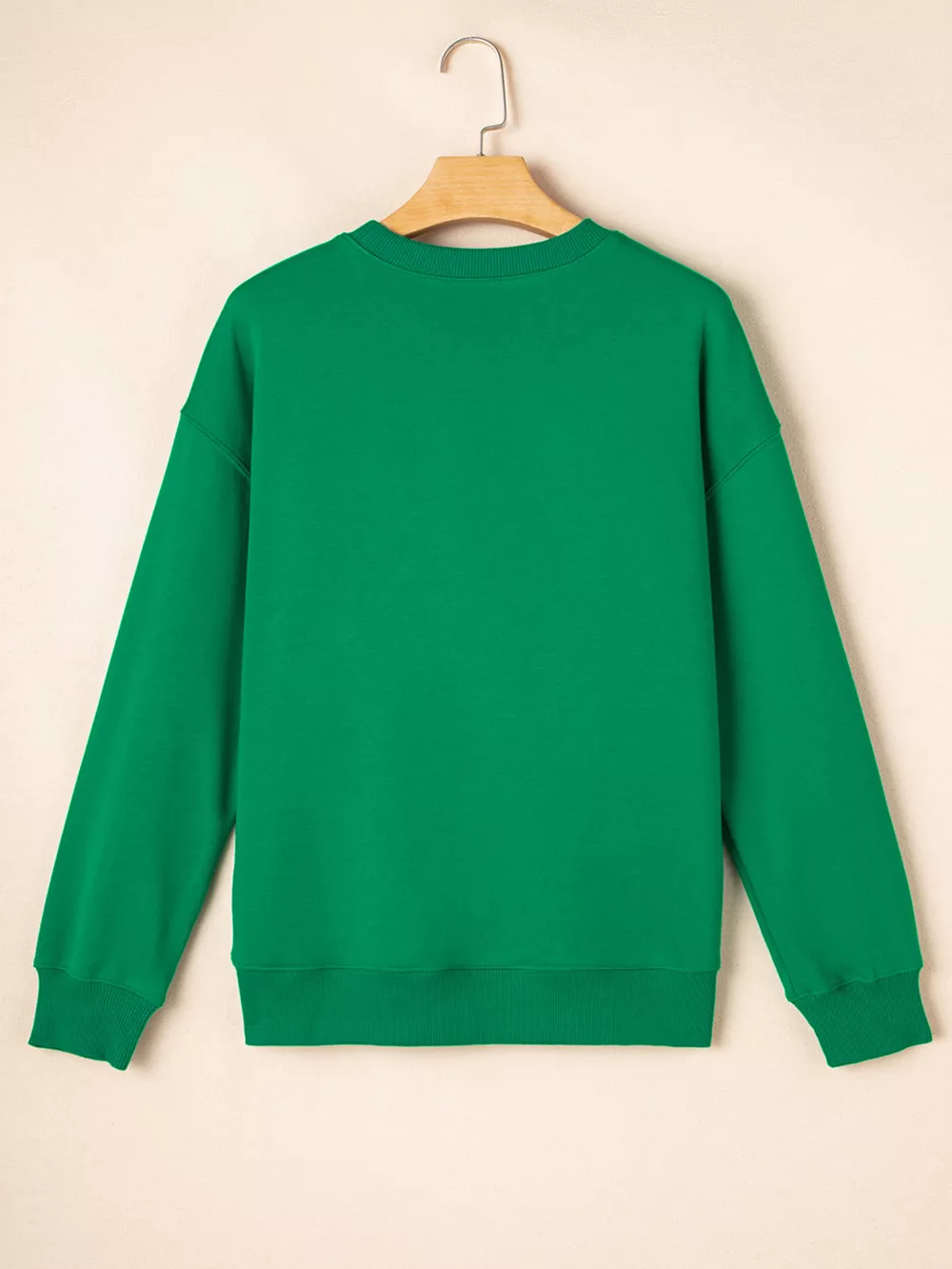 Sequin Letter Graphic Father Christmas Patched Sleeve Drop Shoulder Sweatshirt
