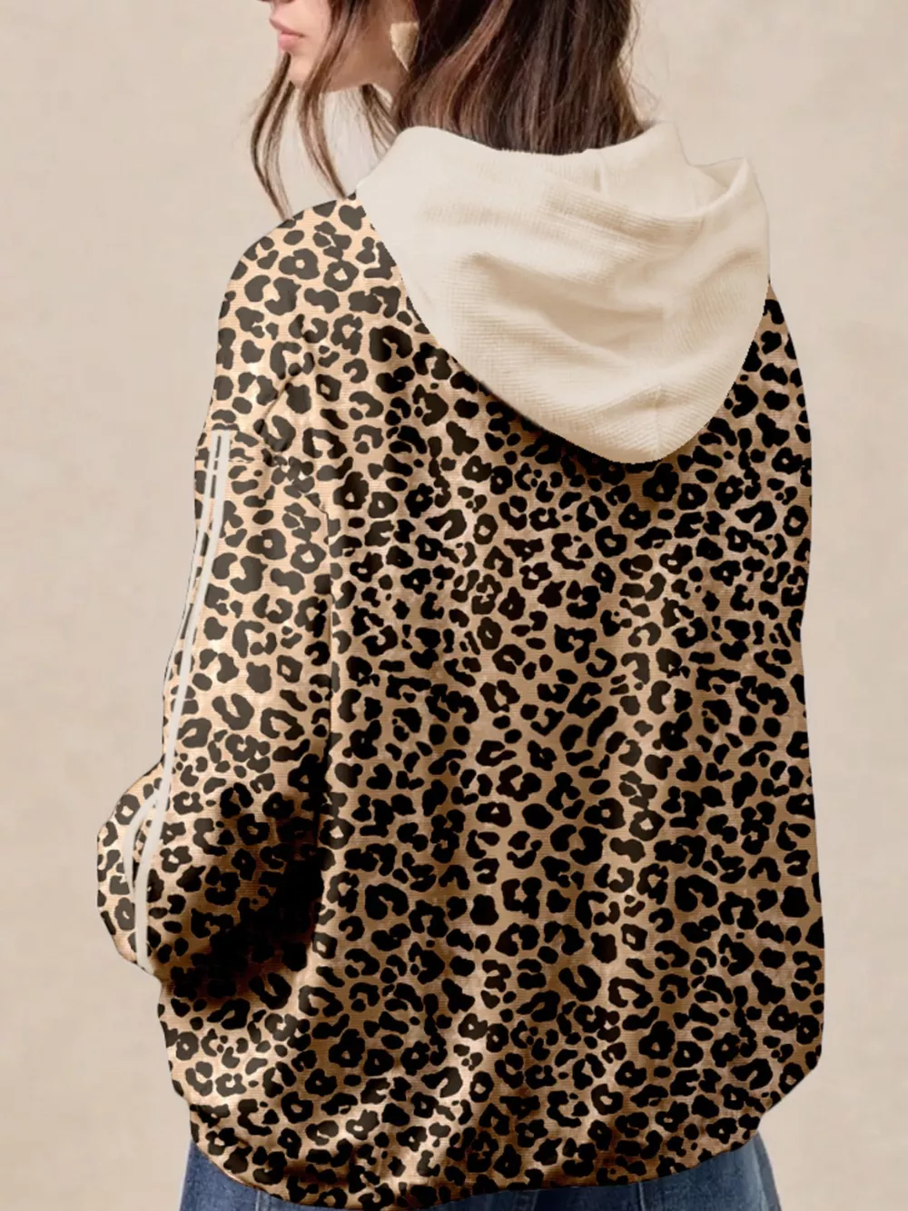 Leopard Print Long Sleeve Hoodie with Pocket