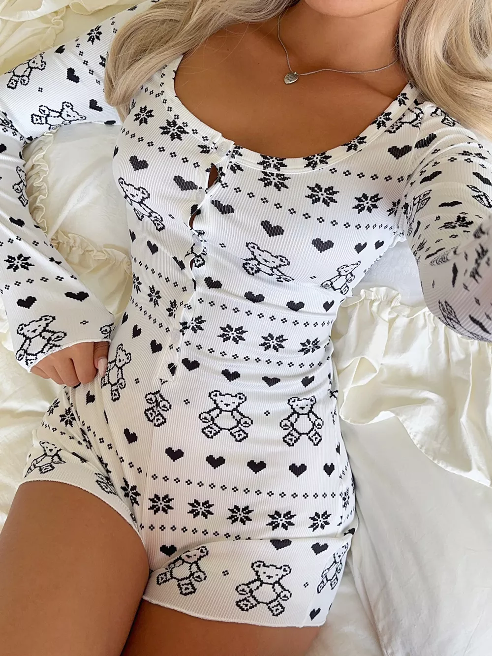 Printed Long Sleeve Romper