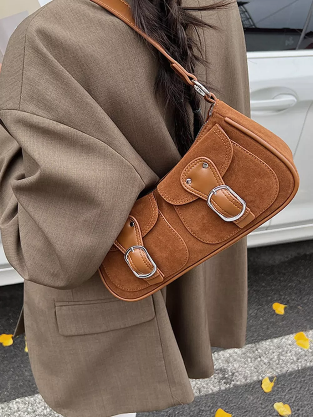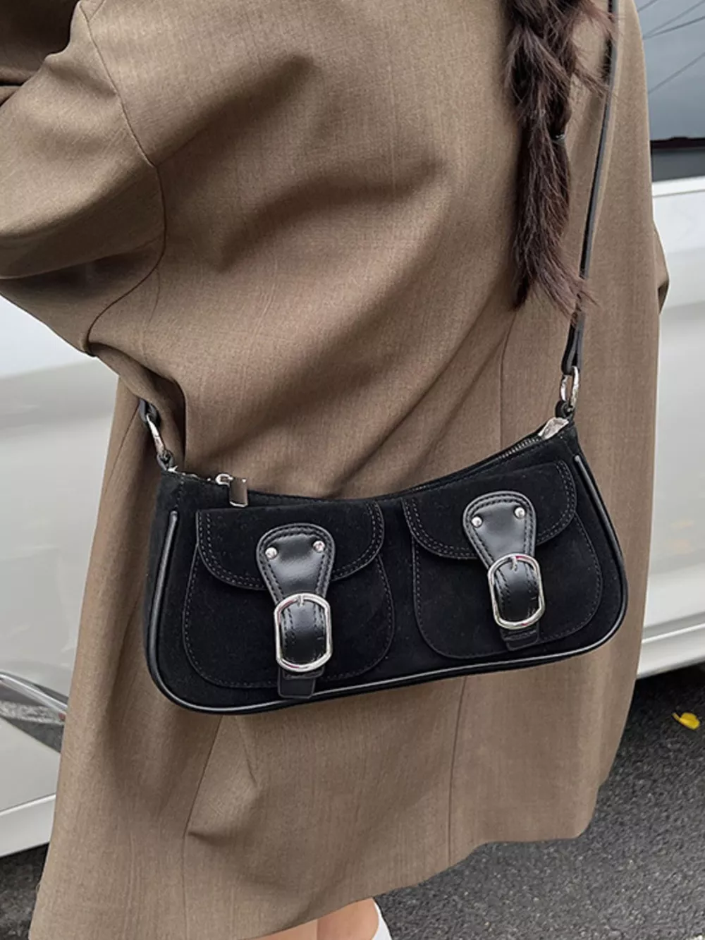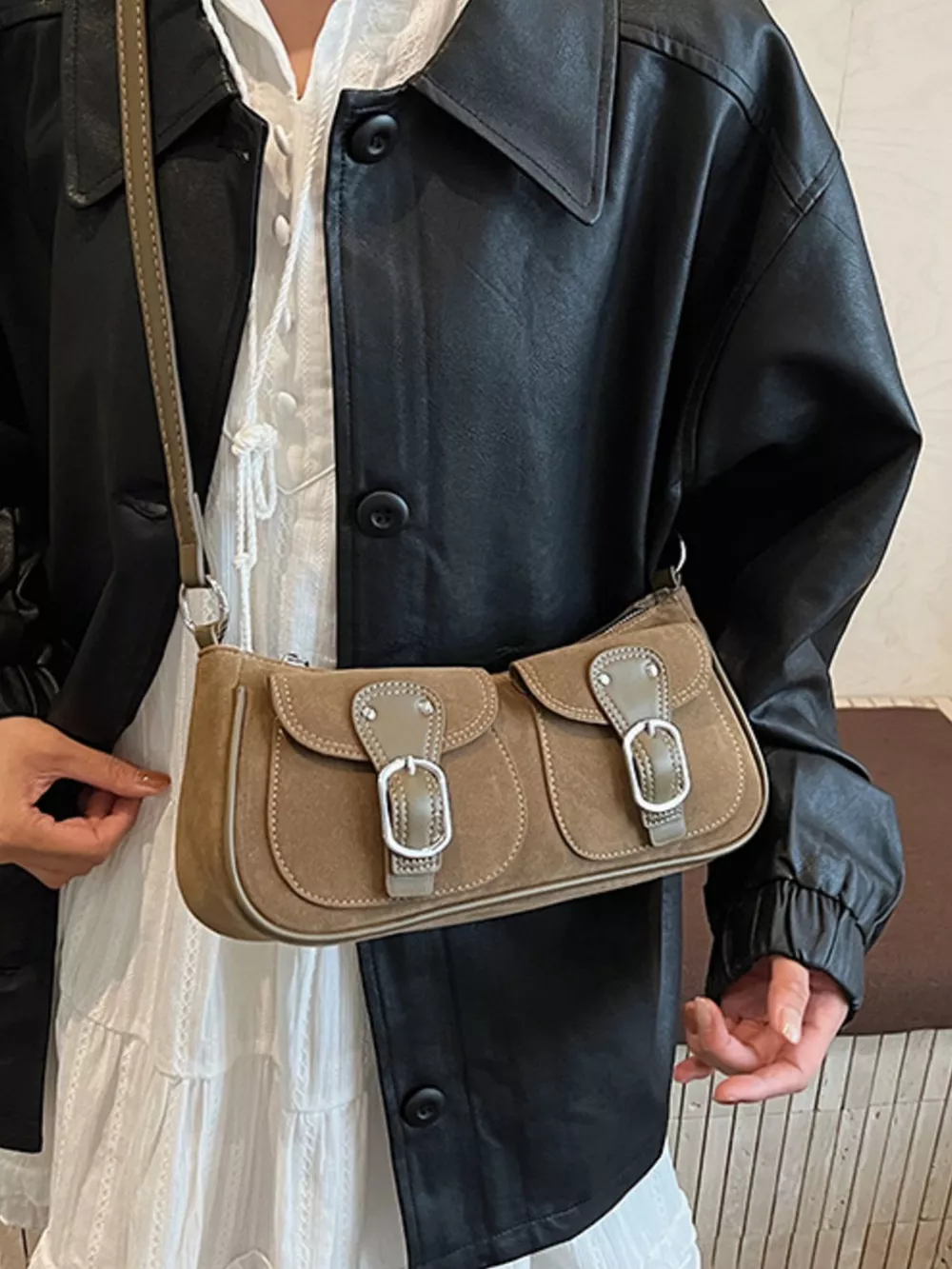 Buckle Decor Shoulder Bag