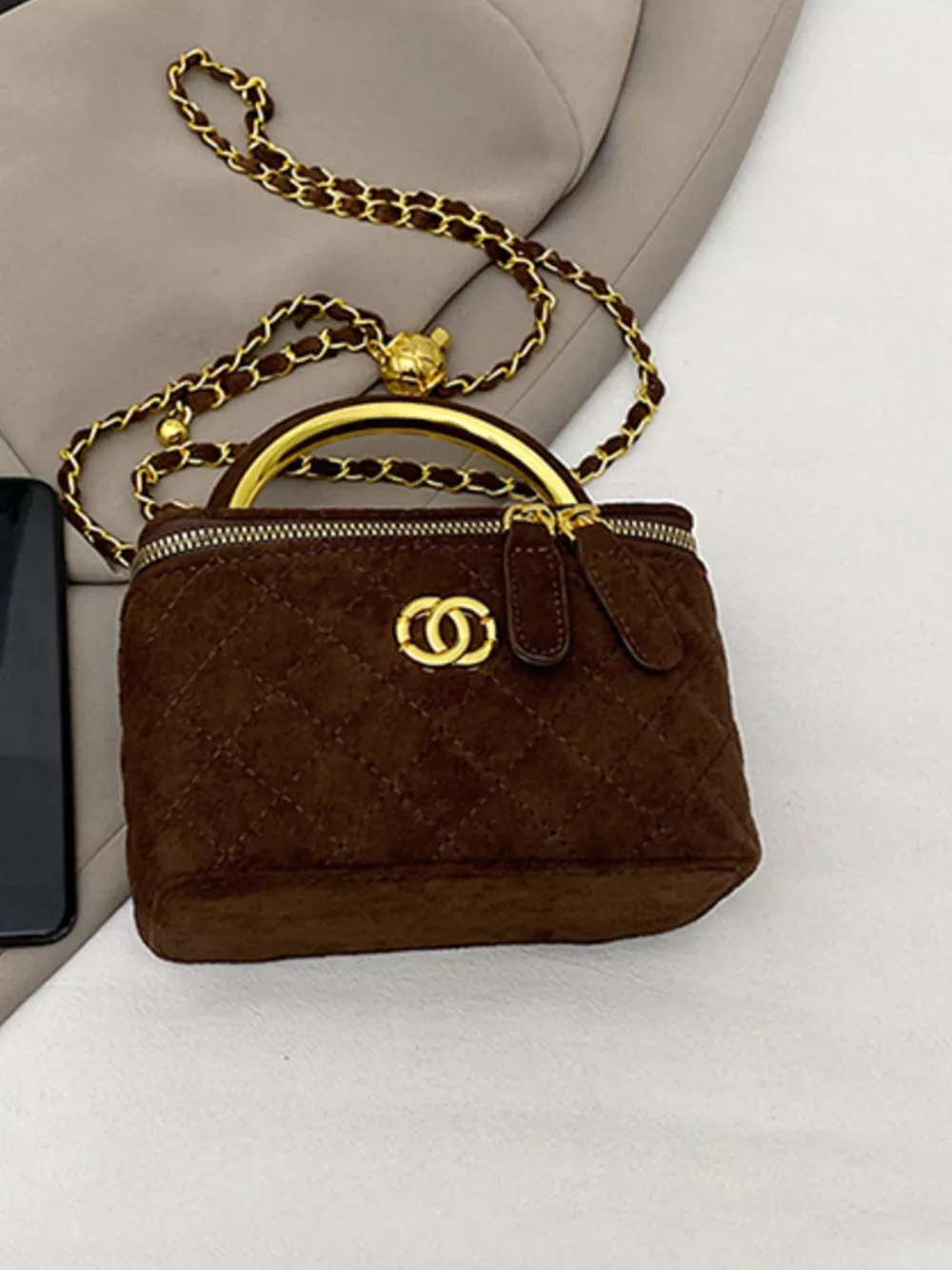 Quilted Top Handle Crossbody Bag