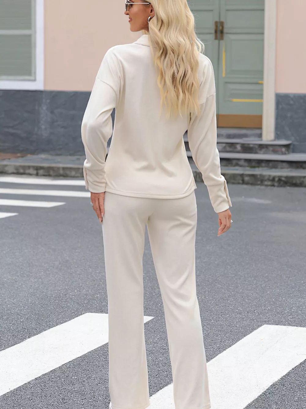 Collared Split Neck Ribbed 2pcs Outfit Set