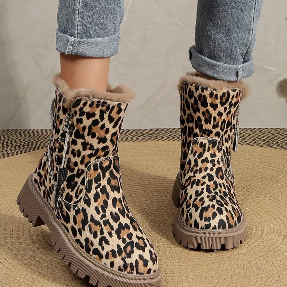 Leopard Print Fur Lined Ankle Boots