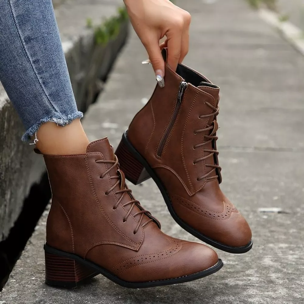 Lace-Up Ankle Boots with Zipper