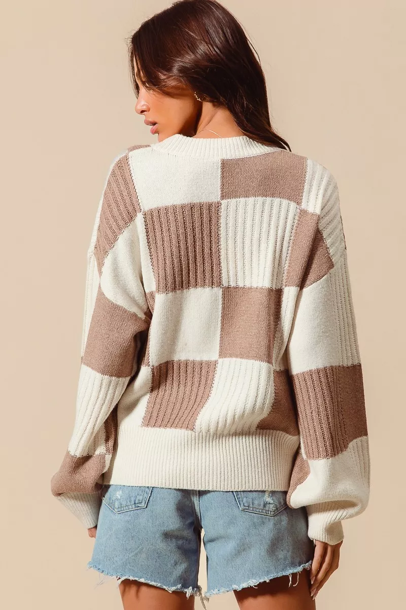 SO ME Checkered Button Front Ribbed Sweater Cardigan
