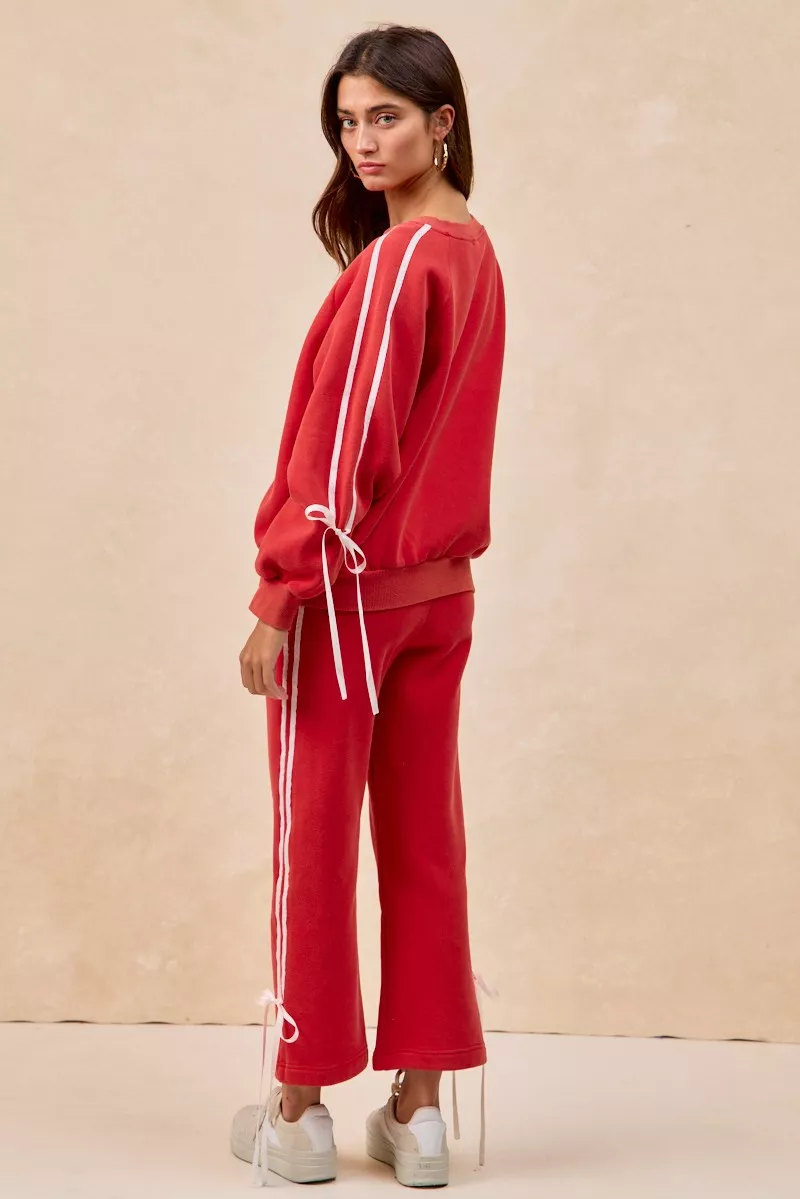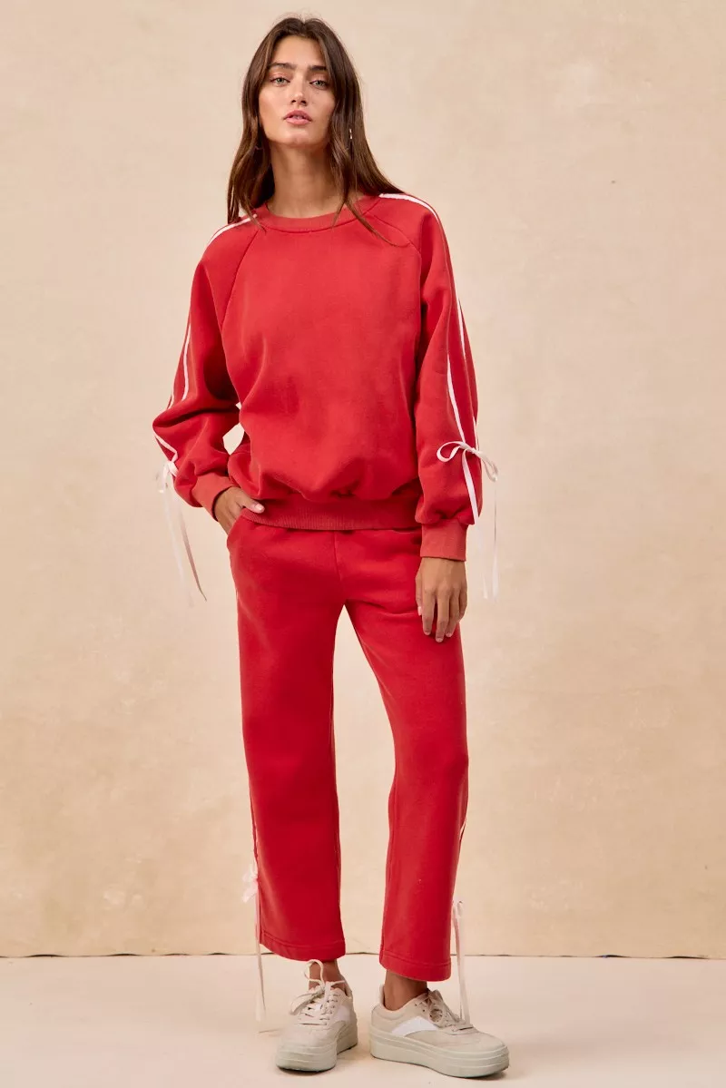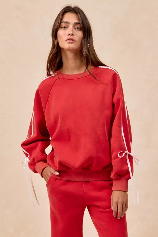 BiBi Side Lined Bow Details Fleece Sweatshirt