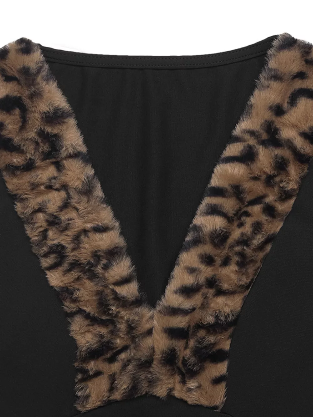 Leopard Trim V-Neck Long Sleeve Bodysuit