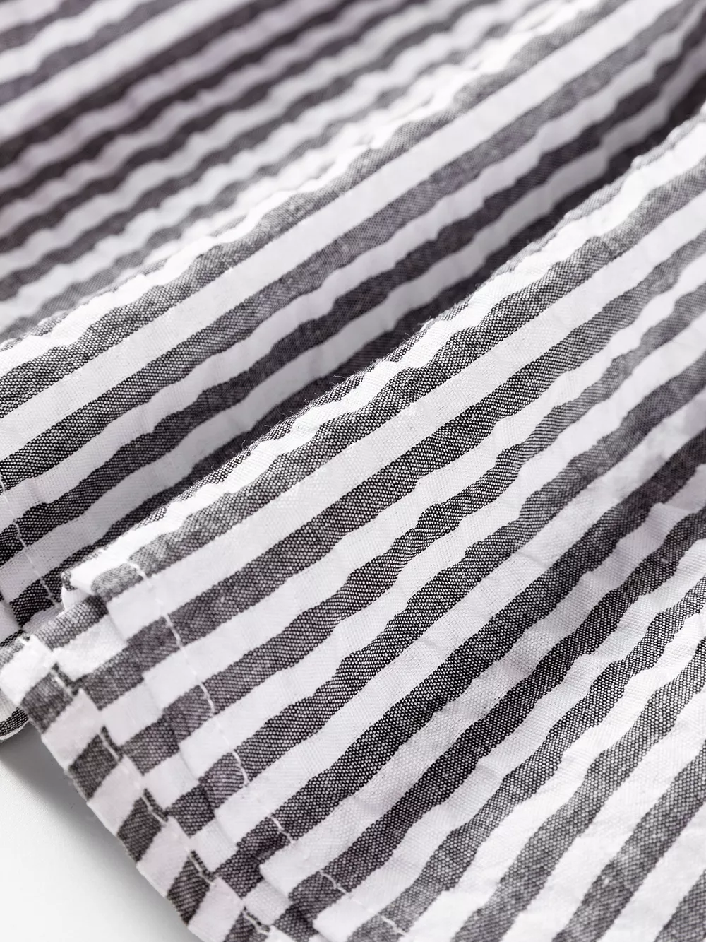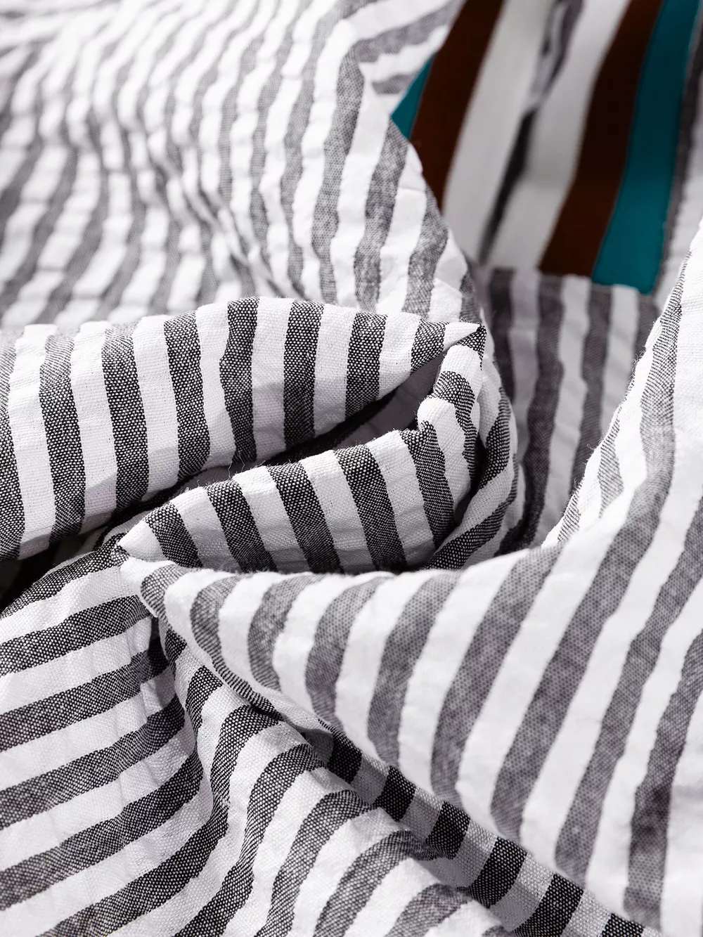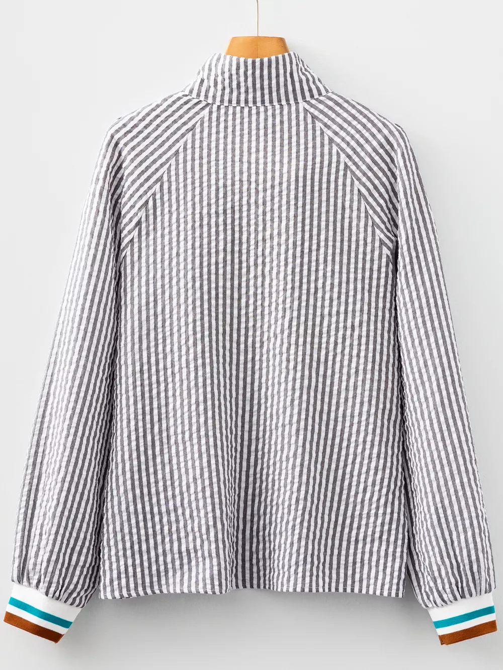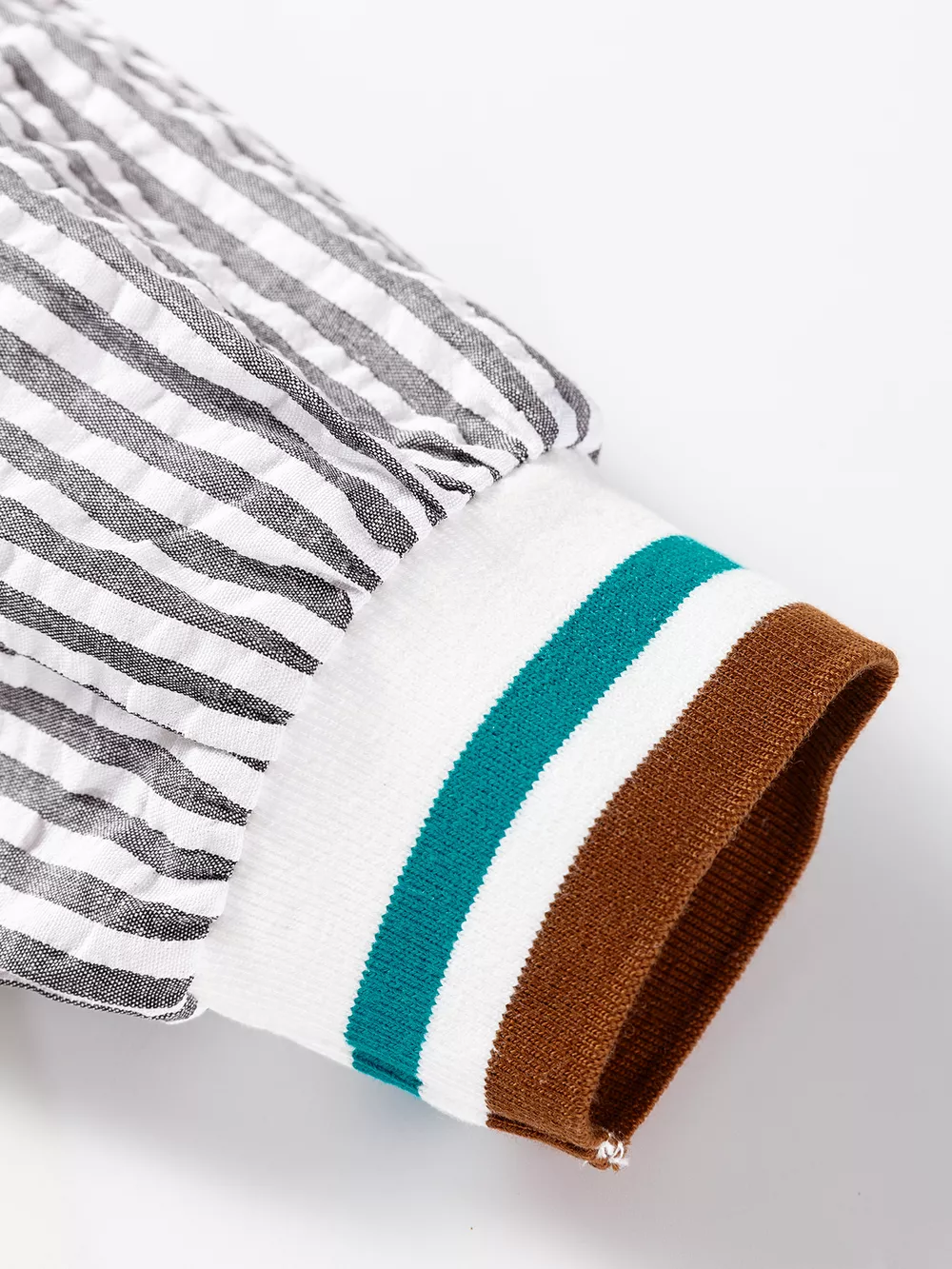 Striped Print Contrast Patchwork Detail Split Neck Blouse