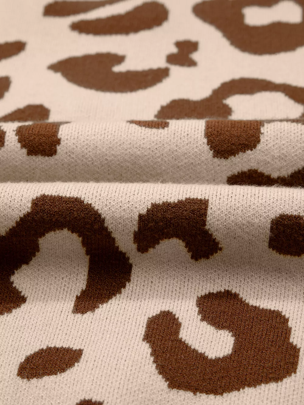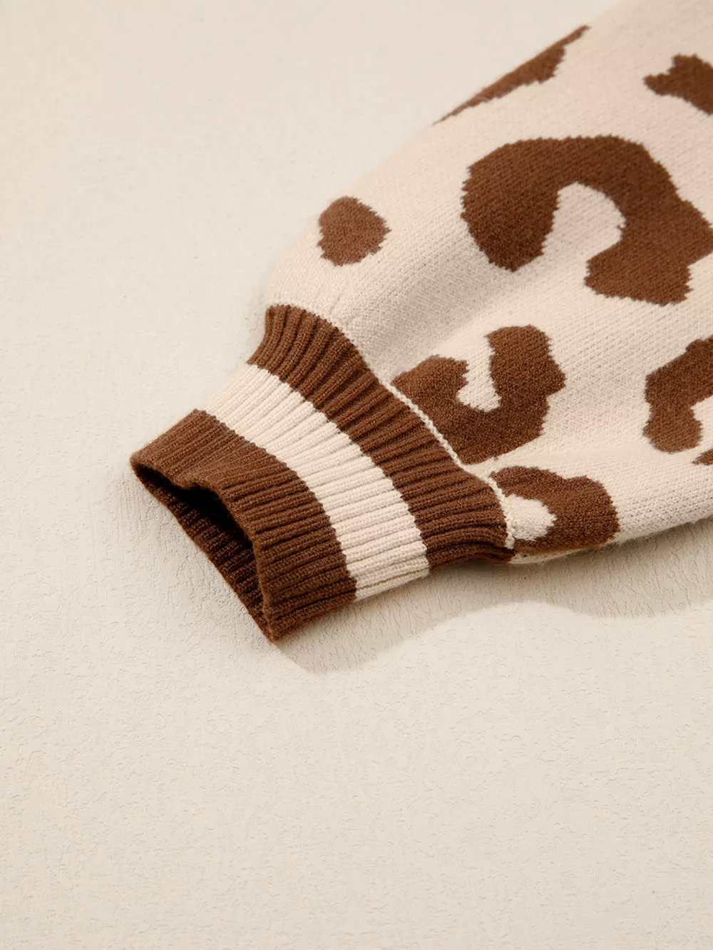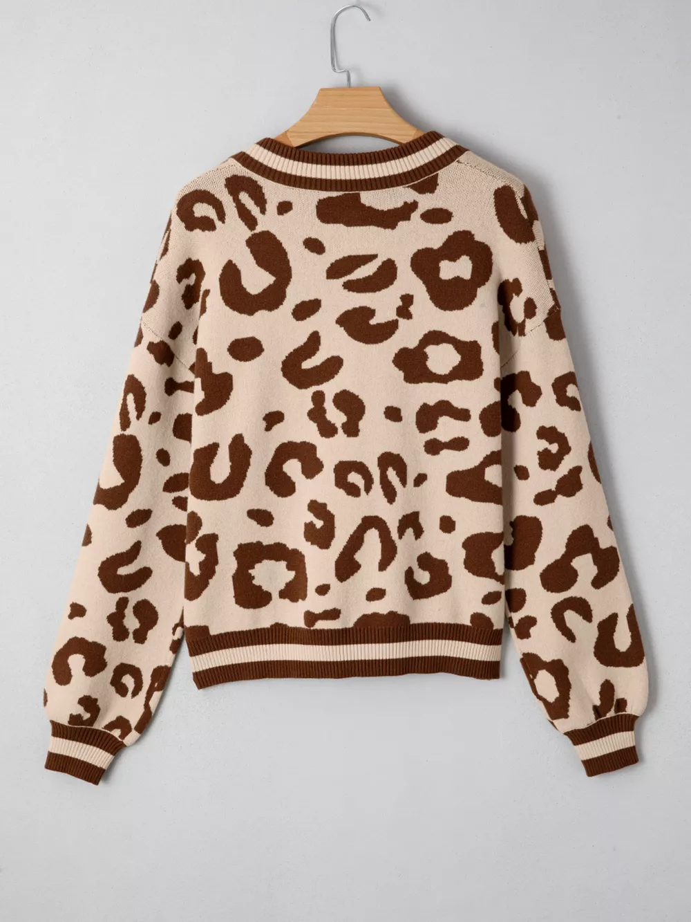 Leopard Knit Notched Casual Sweater