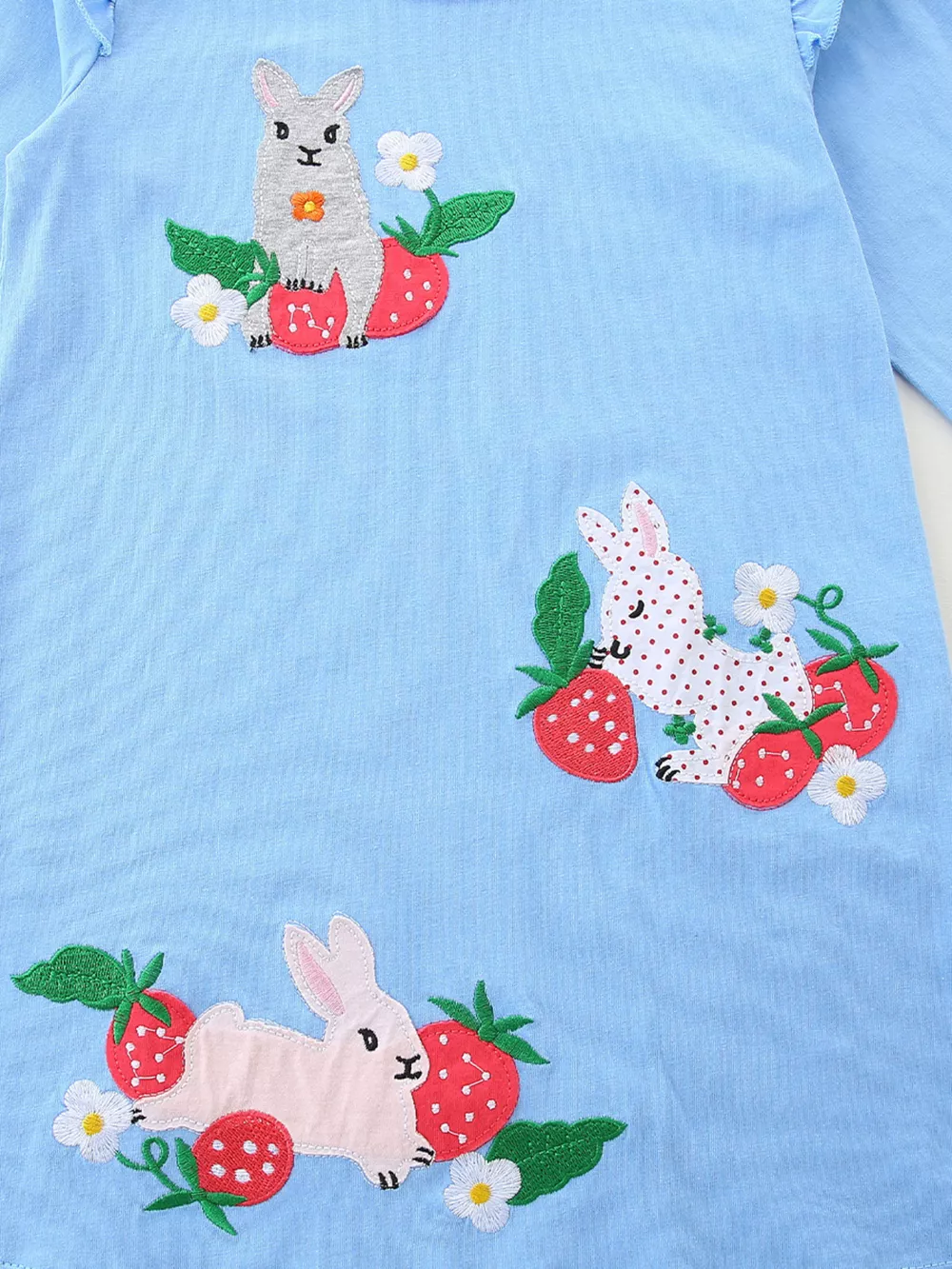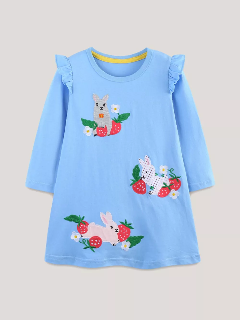 Children's Cute Rabbit & Strawberry Long Sleeve Dress