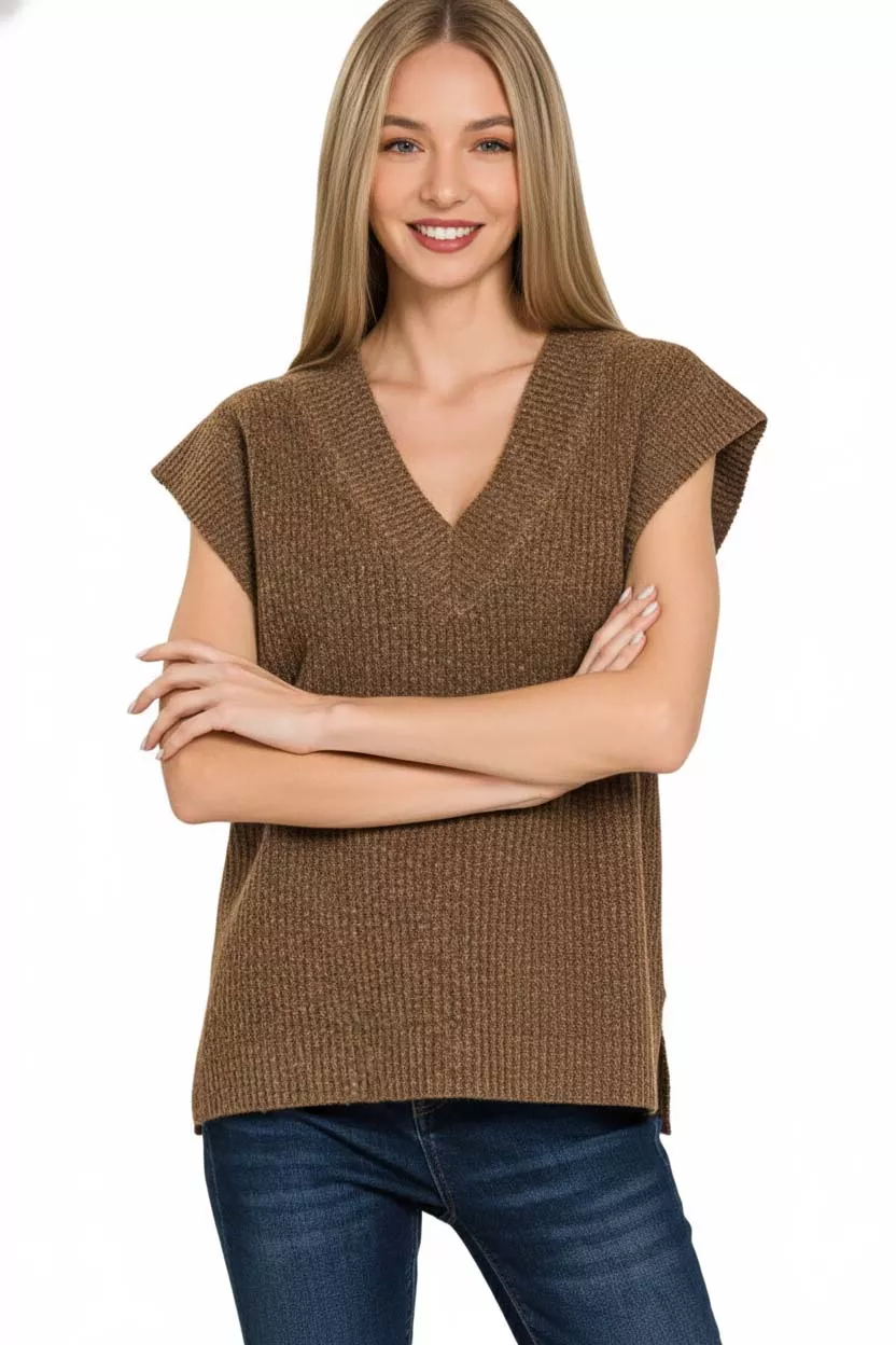 Zenana Ribbed Slit V-Neck Sweater Vest