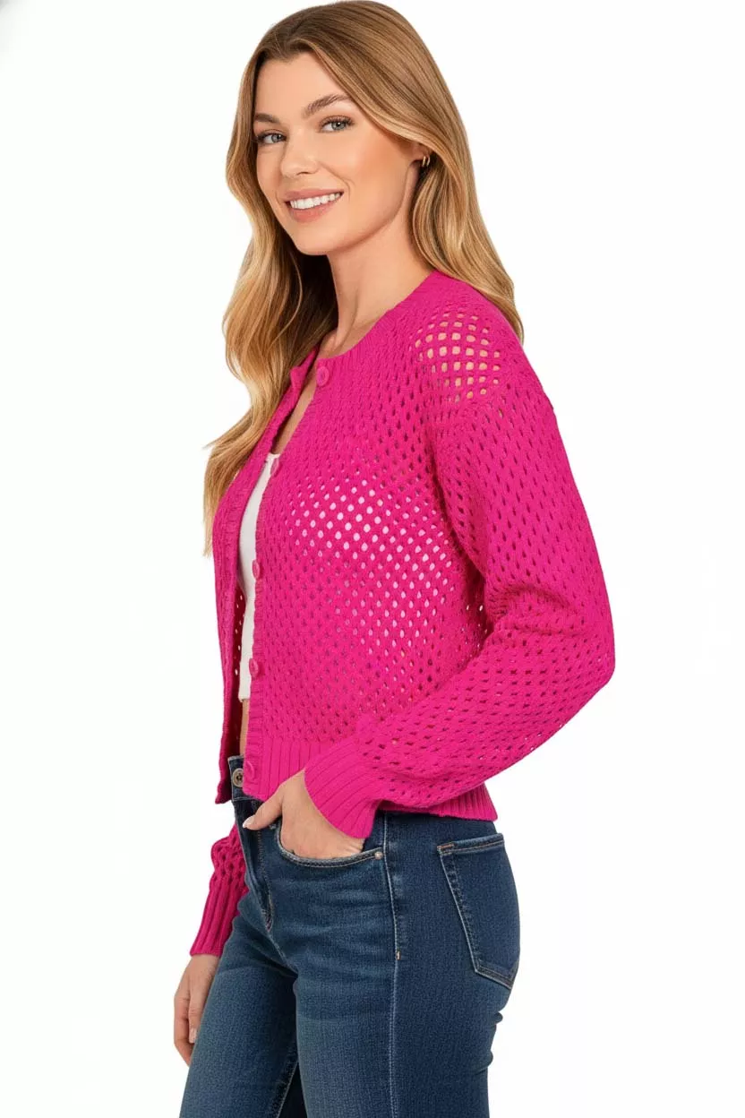 Zenana Button Down Lightweight Crochet Cardigan Sweater