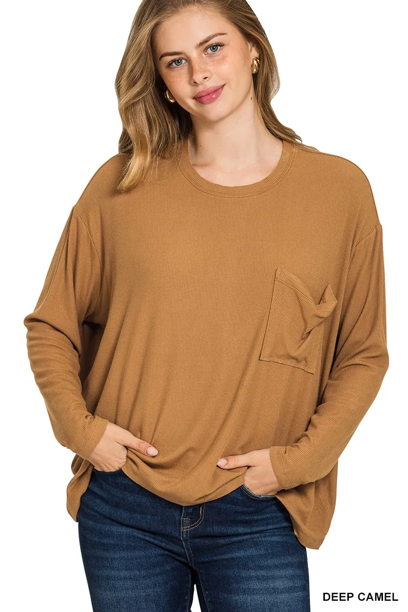 Zenana Ribbed Rayon Span Dolman Sleeve Top
