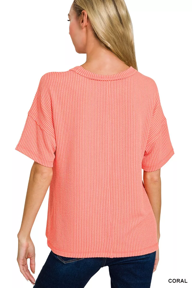 Zenana Raised Rib Exposed Seam Short Sleeve Top