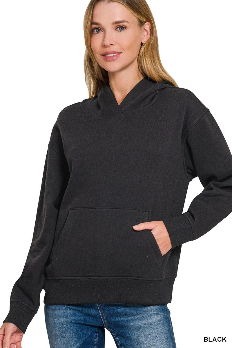 This fleece kangaroo pocket hoodie is a cozy essential for your casual wardrobe. The kangaroo pocket adds a classic and practical touch to the hoodie. Made from fleece material, this hoodie provides warmth and comfort for chilly days. The hoodie design offers a laid-back and versatile style that pairs well with jeans or leggings. Stay comfortable and stylish with this must-have fleece hoodie featuring a convenient kangaroo pocket.