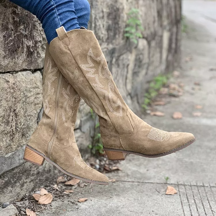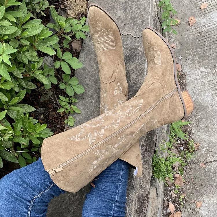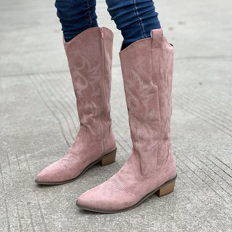 Point Toe Block Heels Boots