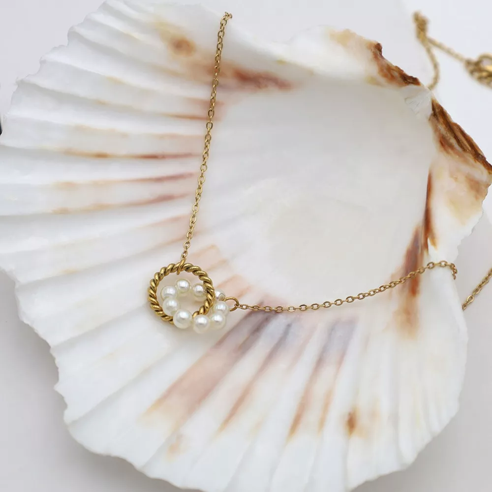 - Material:Synthetic Pearl,18K Gold-Plated,Stainless Steel