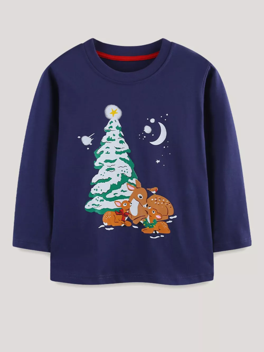 Children's Christmas Deer Graphic Long Sleeve T-Shirt